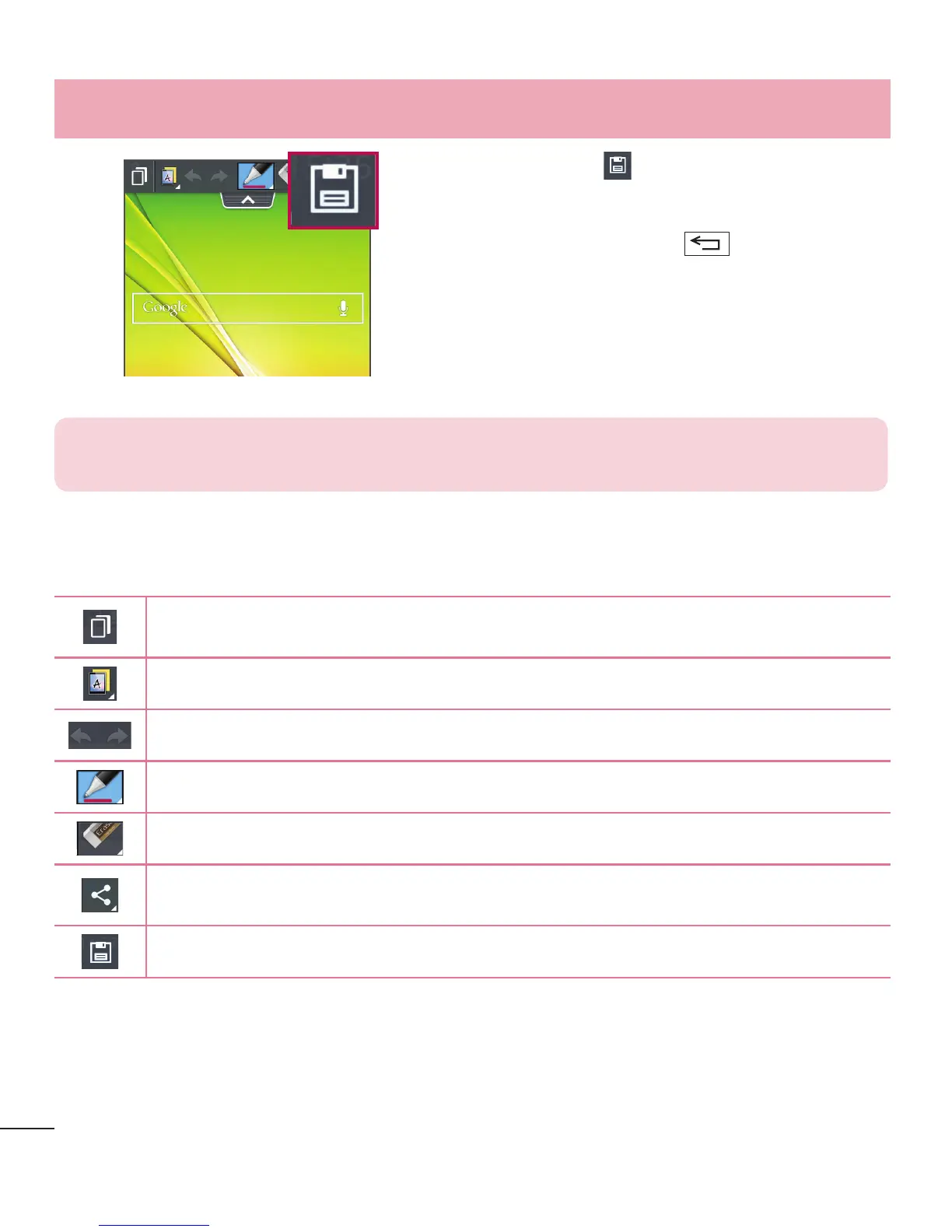 Hiermit werden die Notizen mit dem aktuellen Bildschirm unter Galerie gespeichert.