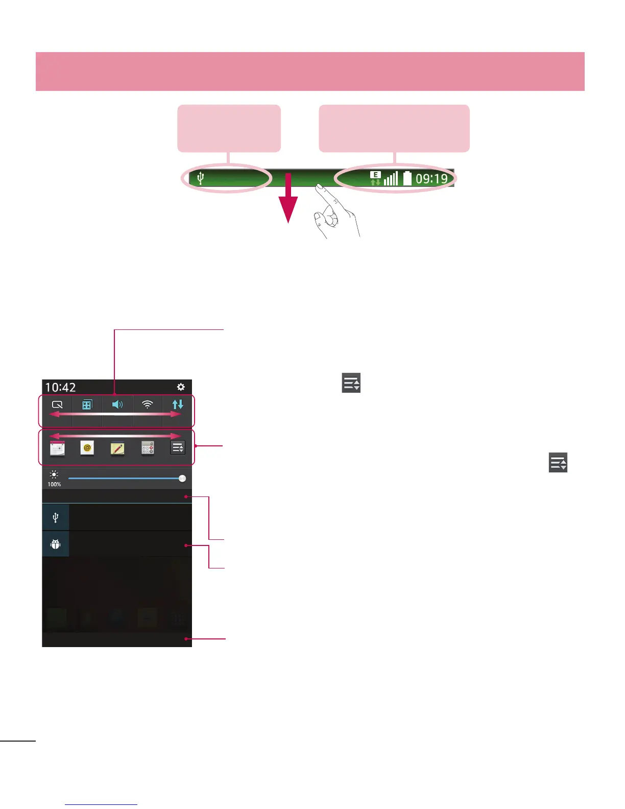 Tap each quick toggle key to turn it on/off. Touch and hold the key to