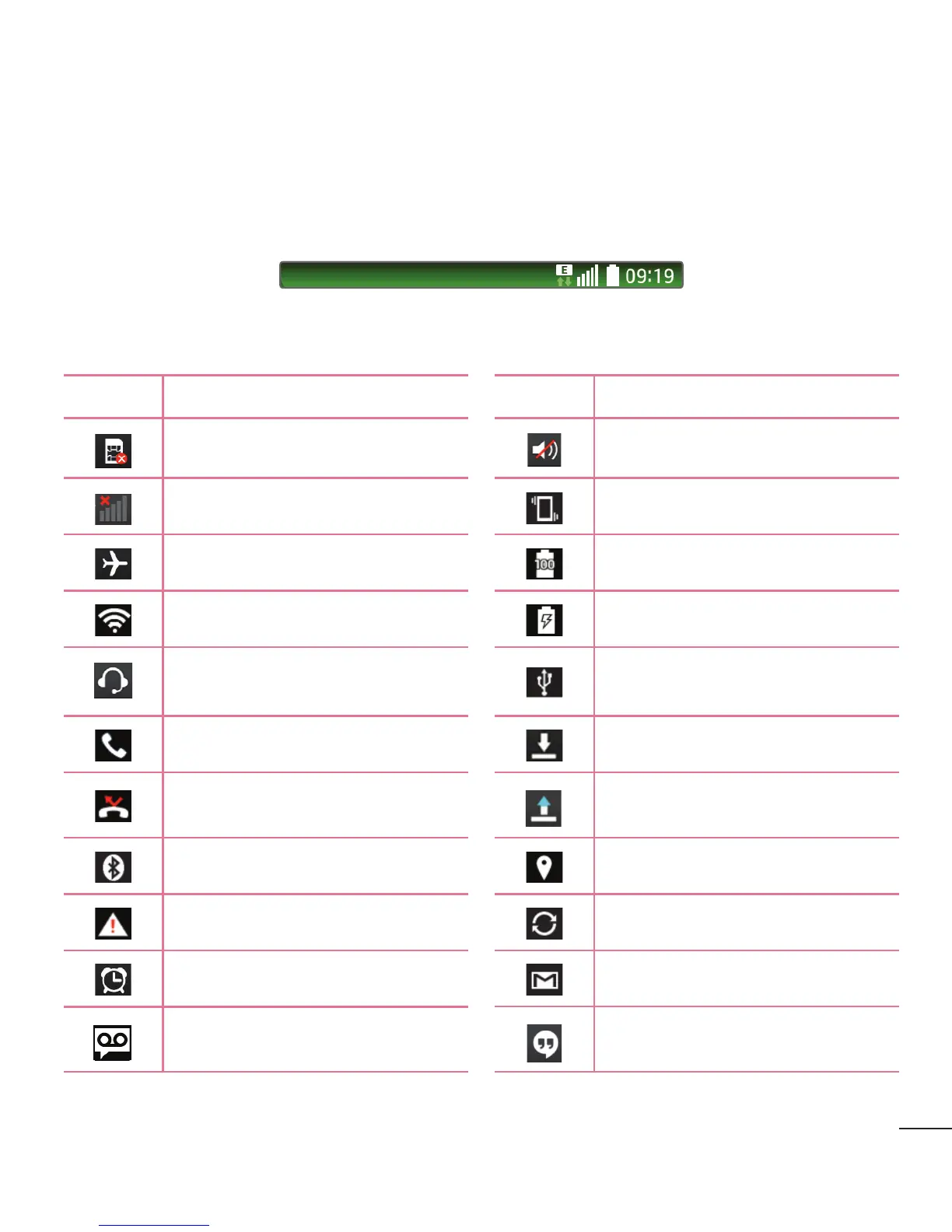 The icons displayed at the top of the screen provide information about the status of the device. The icons listed