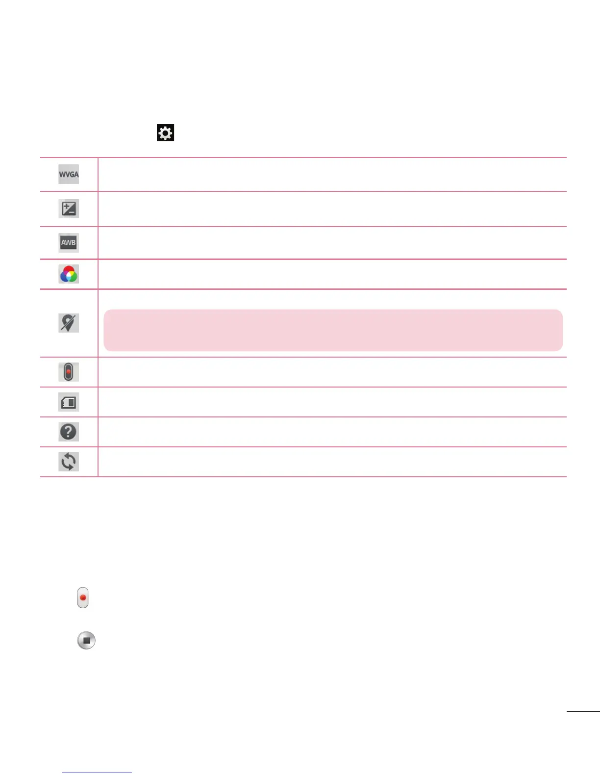 1 Open the Camera application and slide the Video mode button.