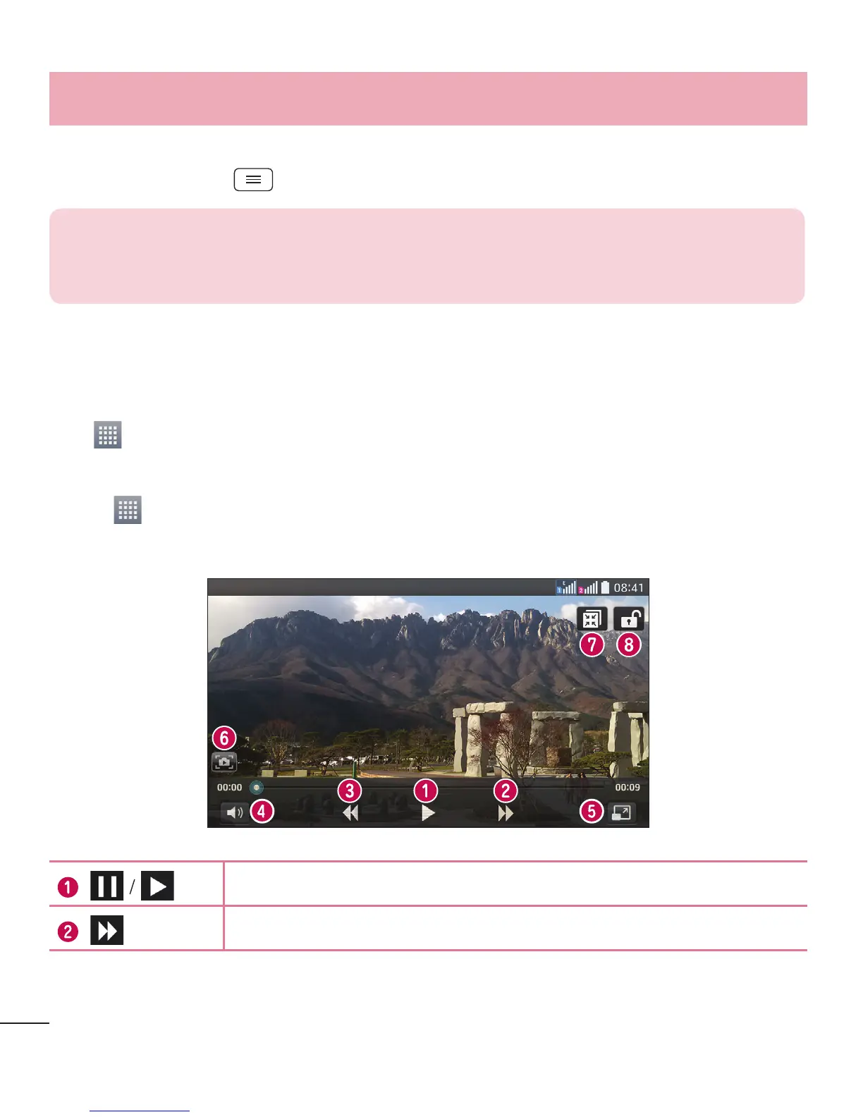 Your phone has a built-in video player that lets you play all of your favorite videos. To access the video player,