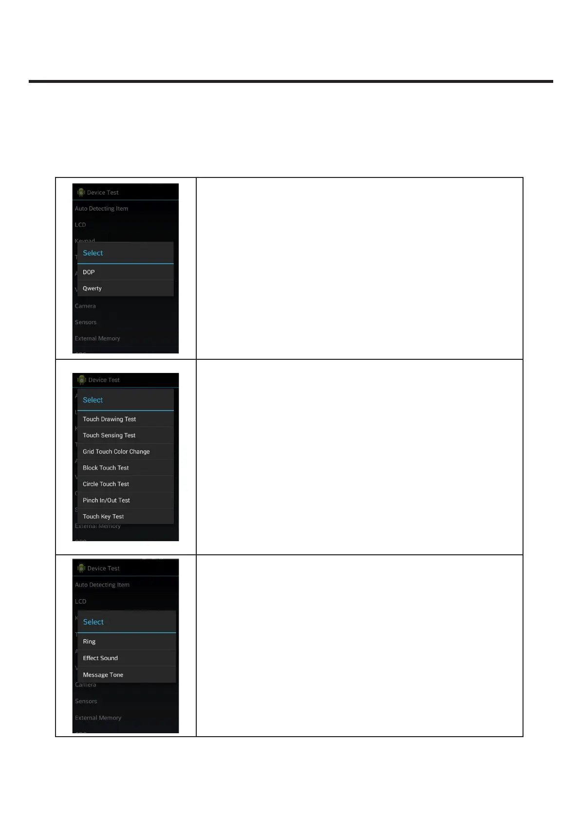 Touch test list