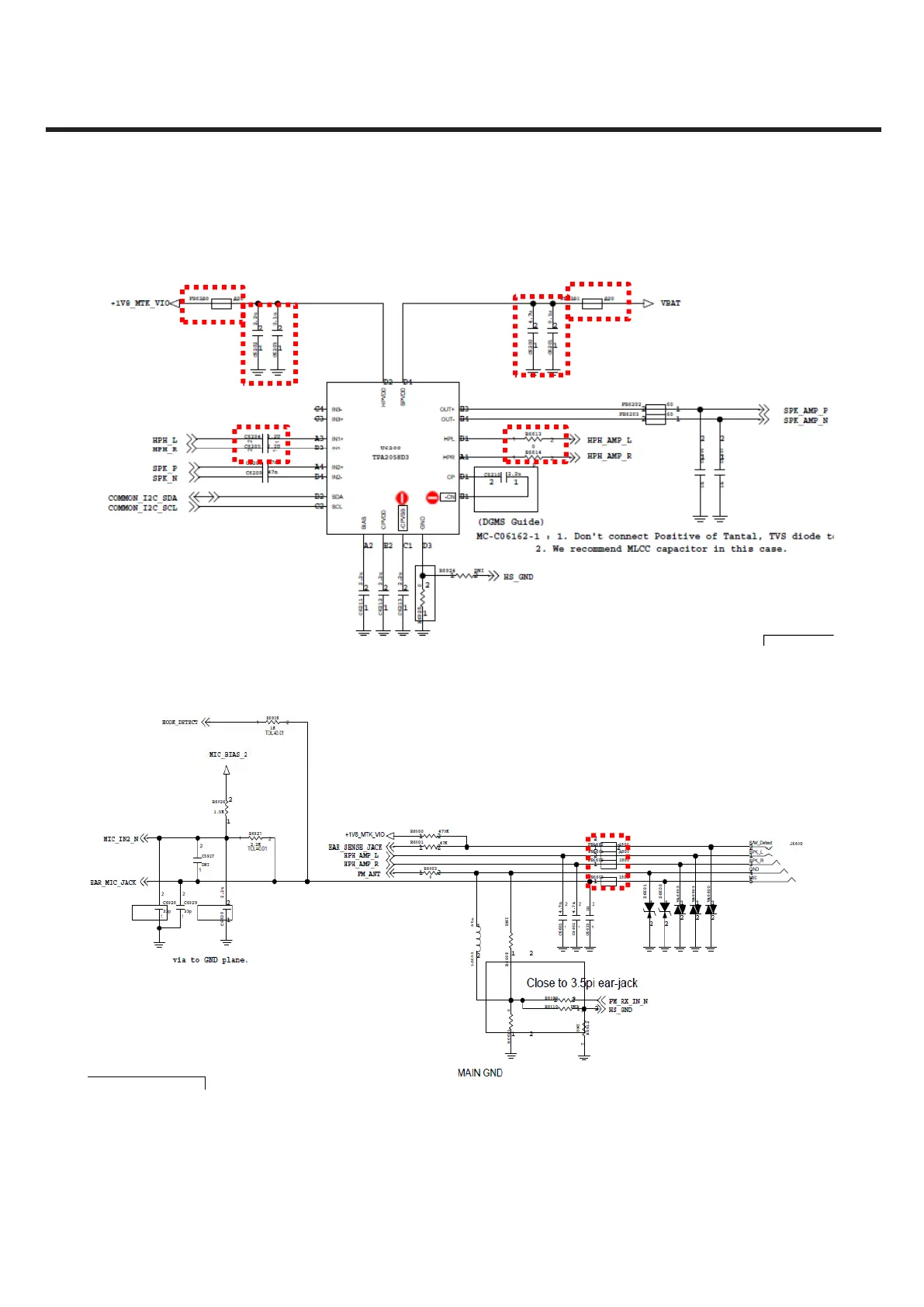 In case of you can’t heard anything, check C6204, C6205, R6613, R6614, FB6601, FB6602.