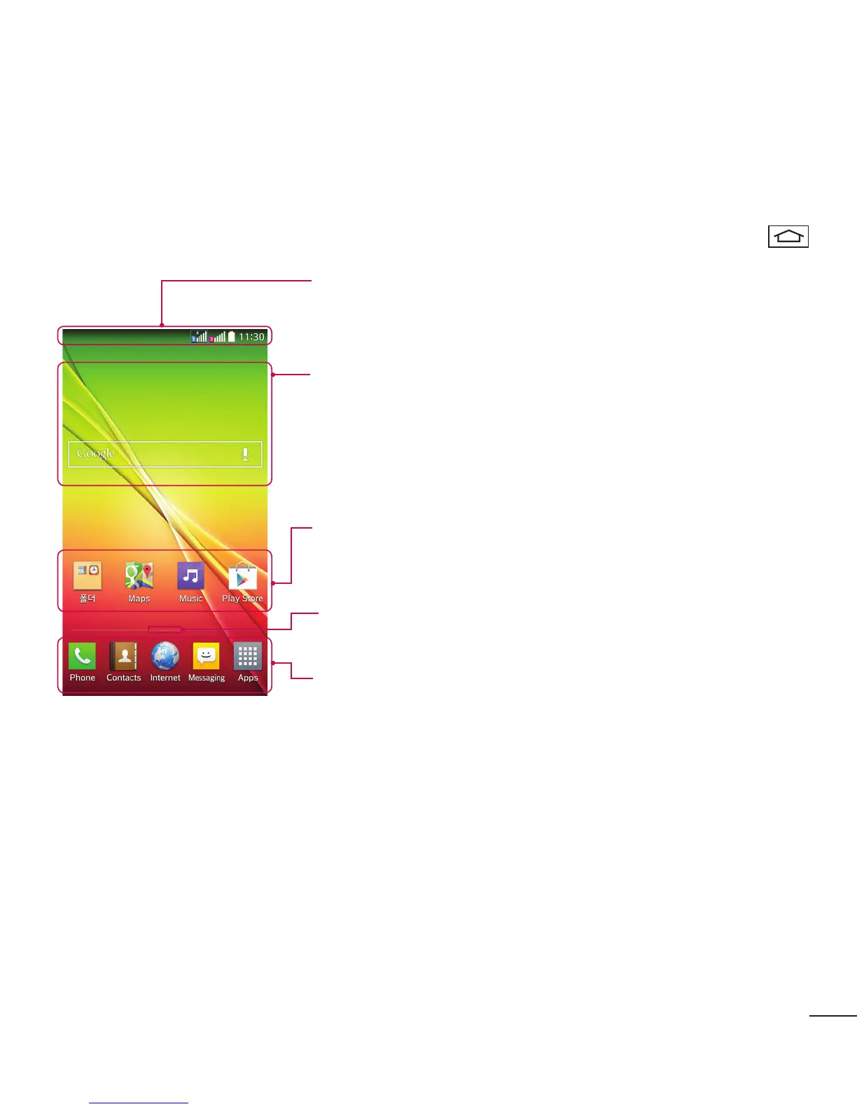 éléments tels des raccourcis d'applications, ou des widgets Google afin d'accéder rapidement aux informations