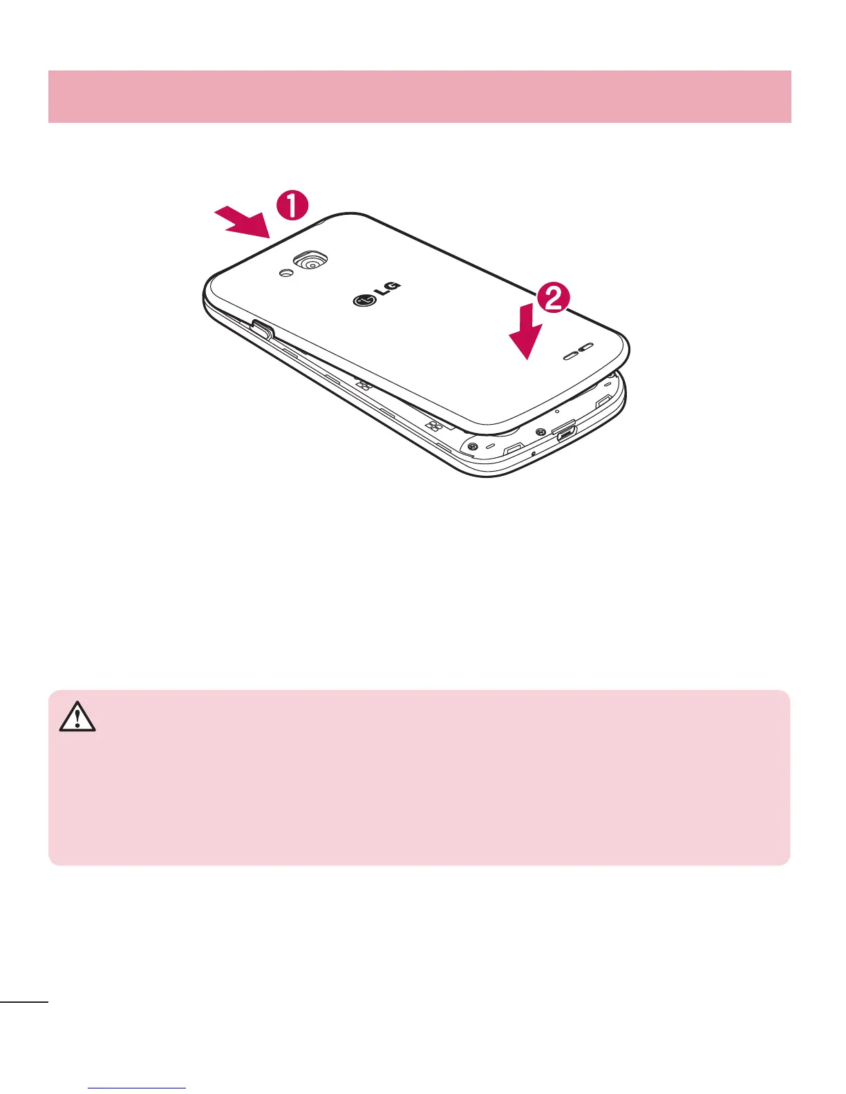 4 Alinhe a tampa da bateria sobre o compartimento da mesma (1) e pressione-a até ficar encaixada (2).
