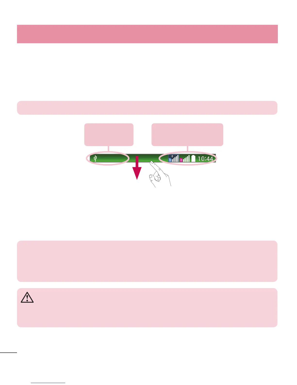 Notifications alert you the arrival of new messages, calendar events, and alarms, as well as to ongoing events,