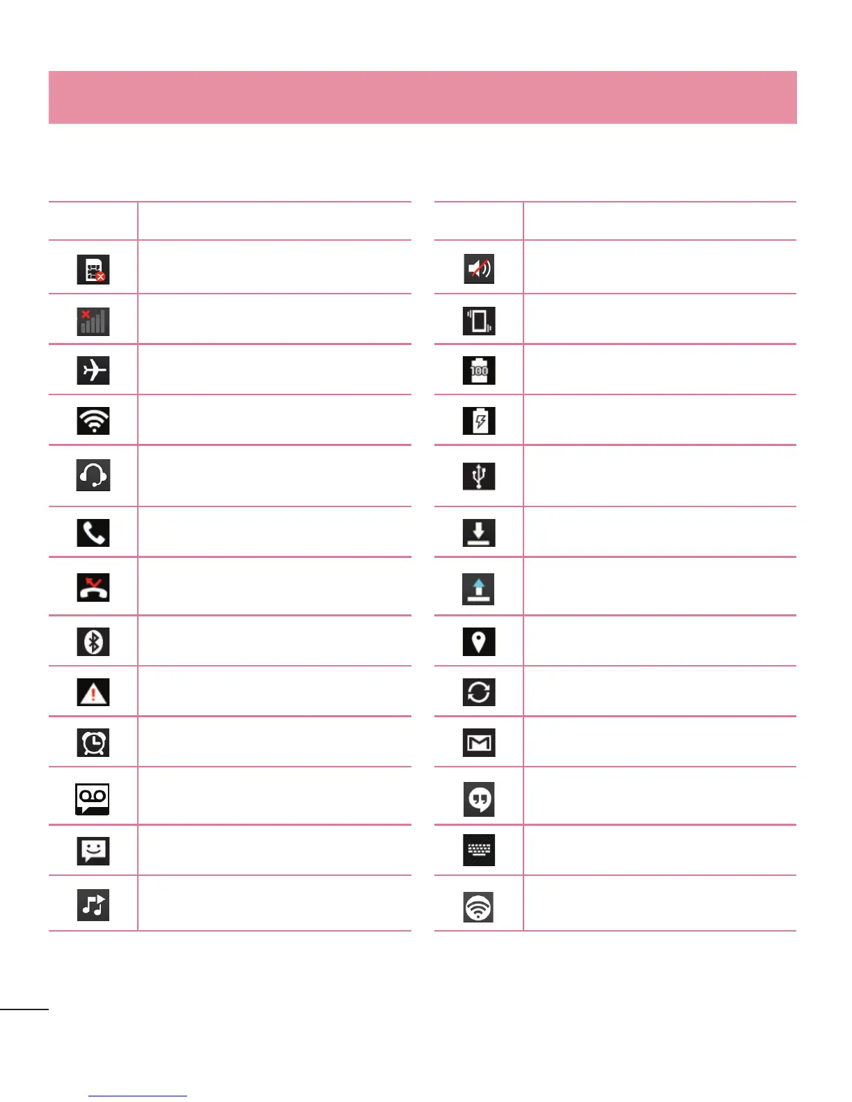 The icons displayed at the top of the screen provide information about the status of the device. The icons listed