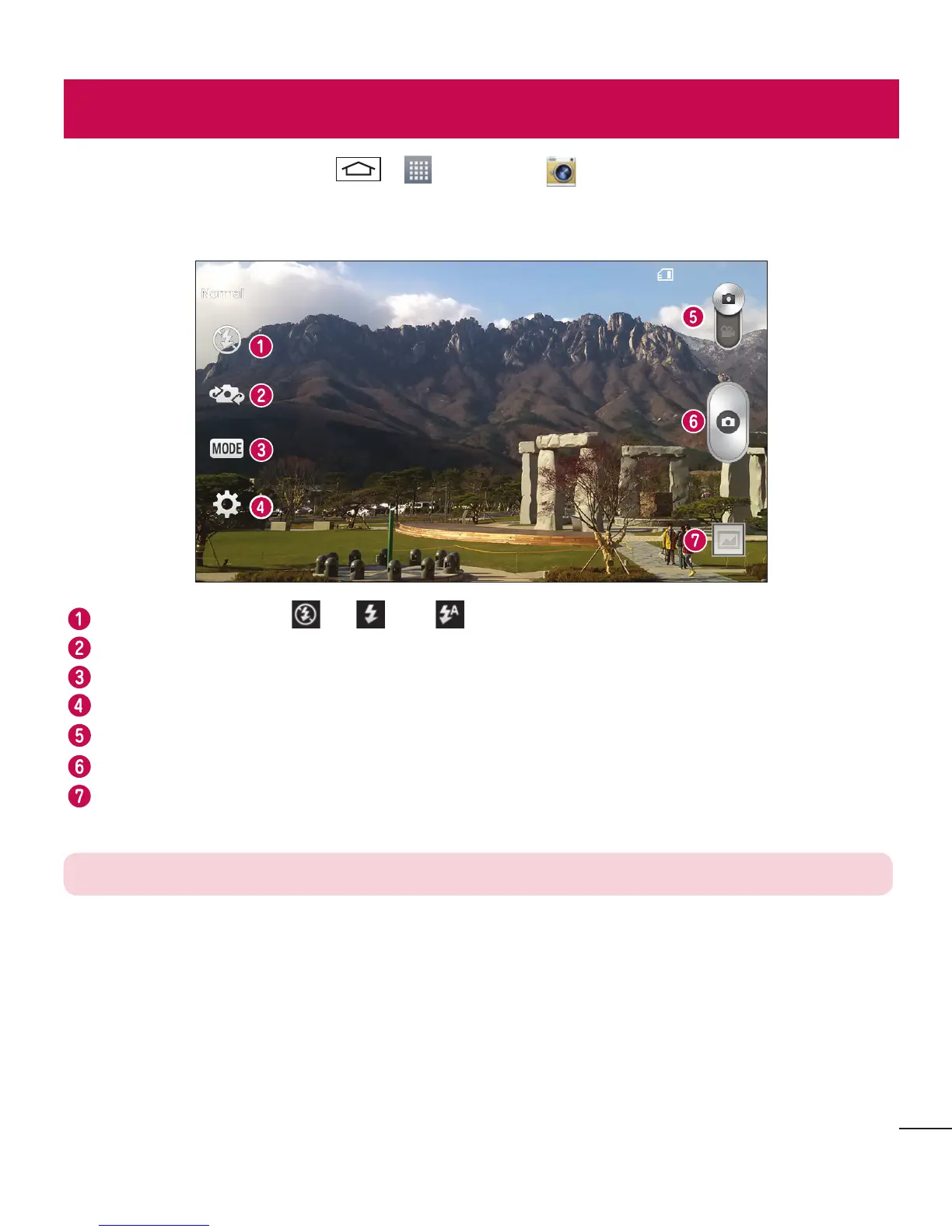 Gallery – Tap to view the last photo you captured. This enables you to access your gallery and view saved