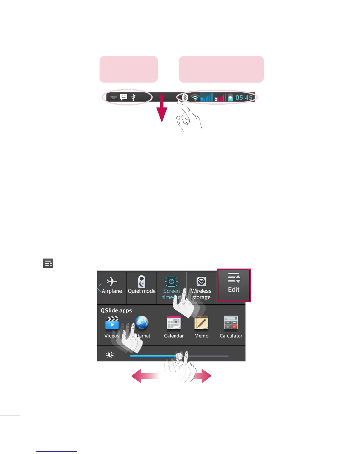Touch . You can then check and rearrange items on the notification panel.