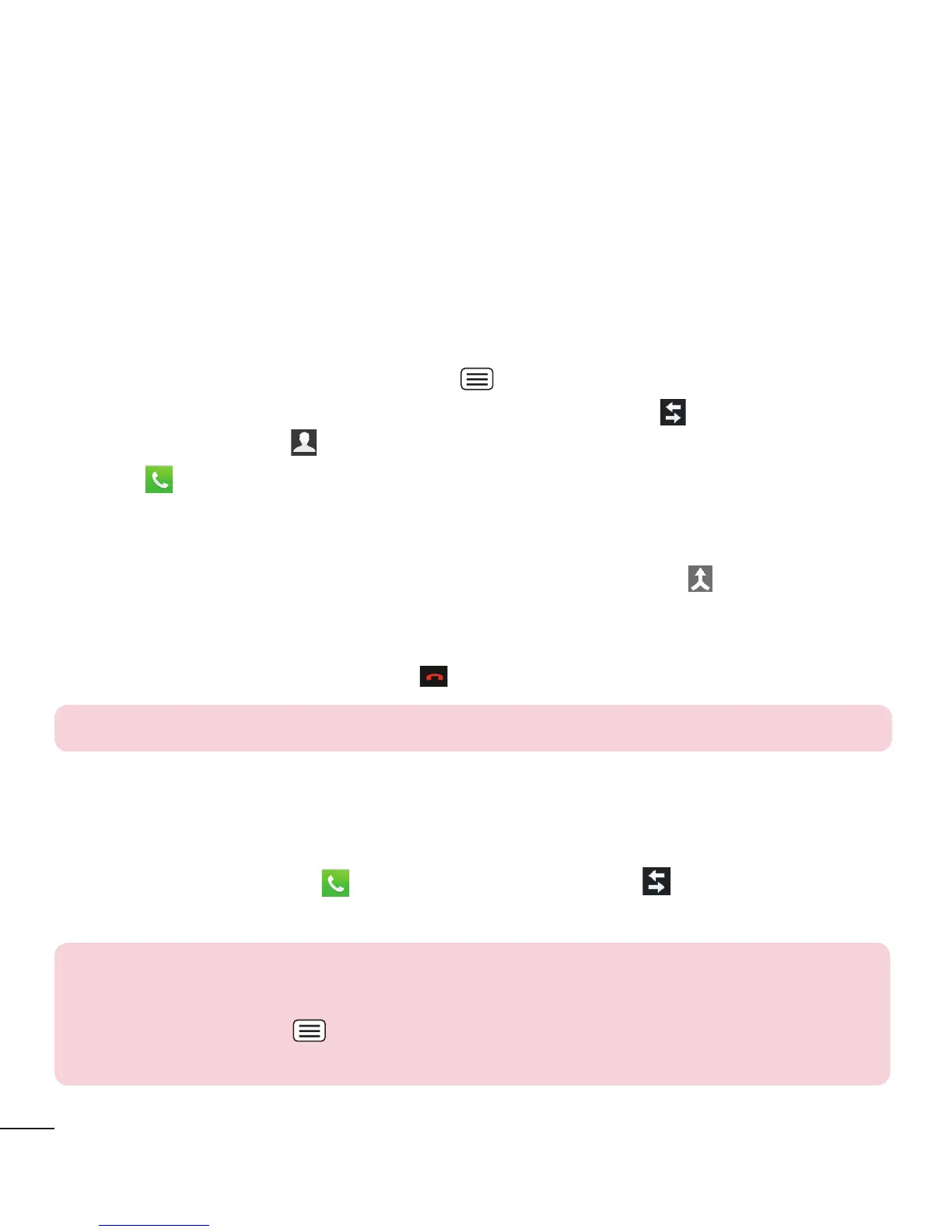 1 During your first call, touch Menu key > Add call and dial the number. You