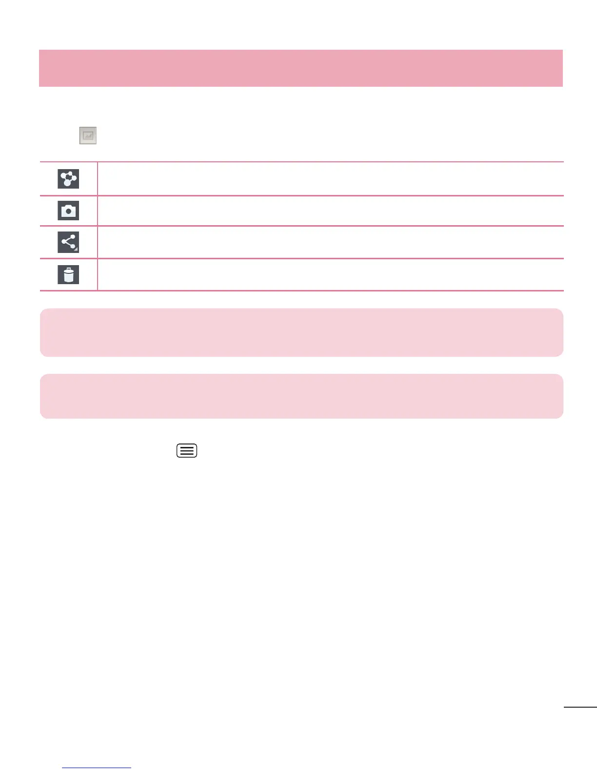 Set image as – Touch to use the photo as a Contact photo, Home screen wallpaper