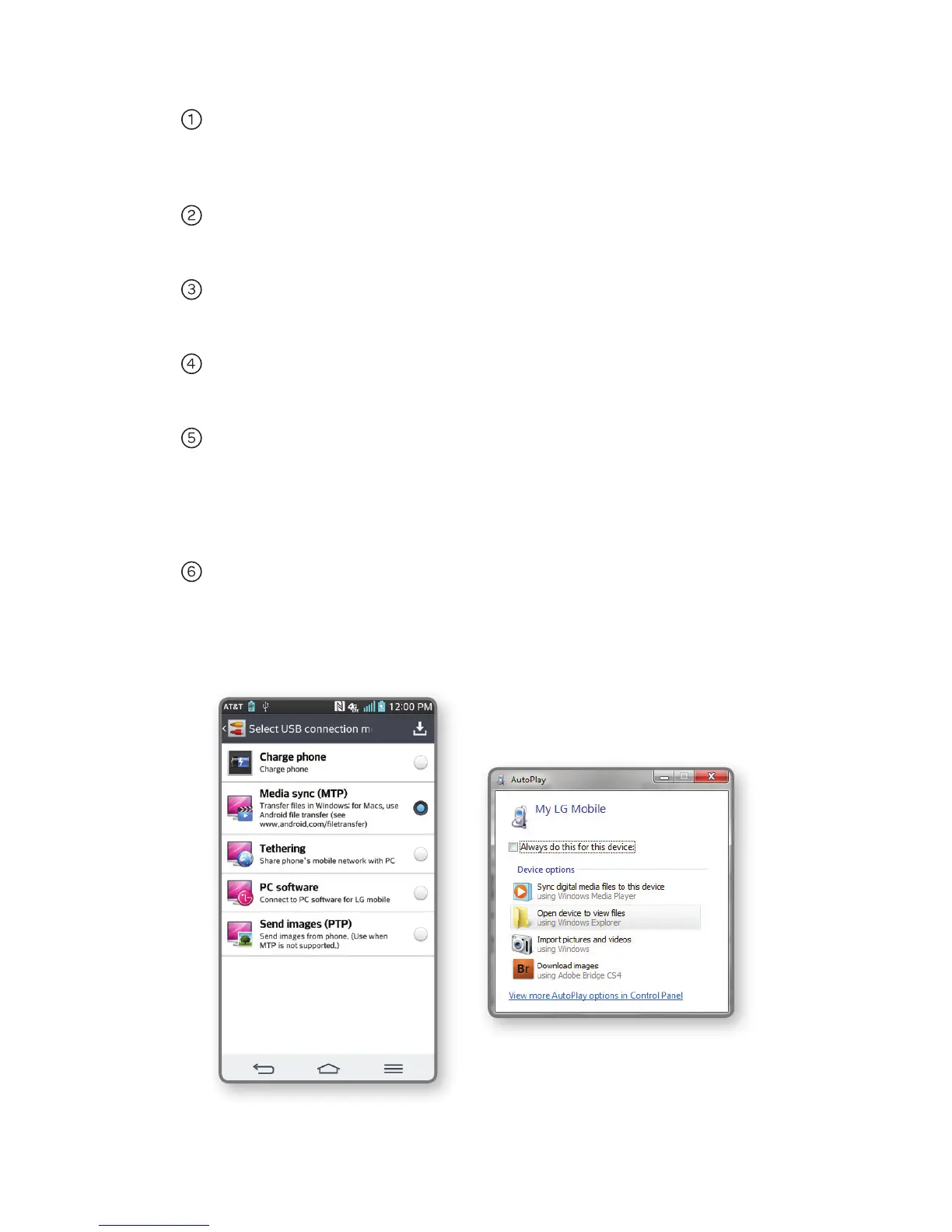Tap OK > Media sync (MTP).