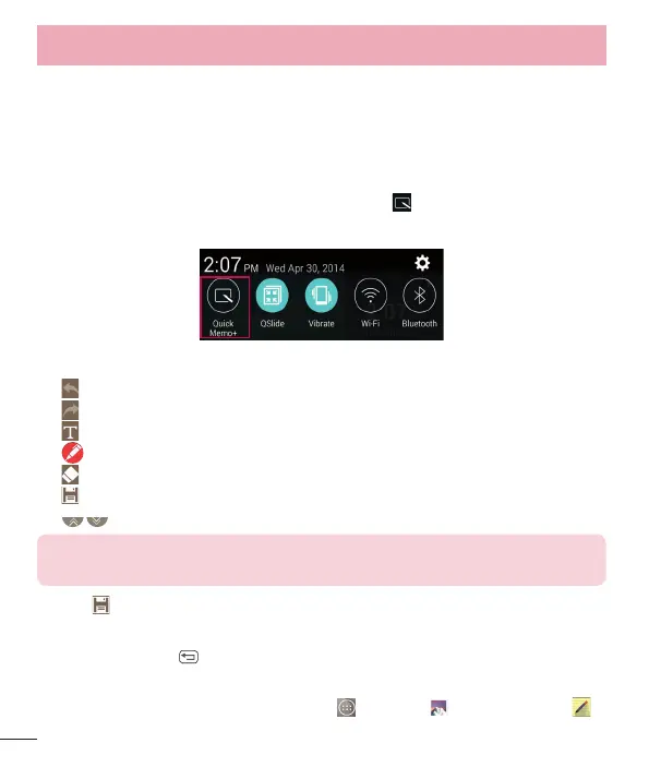 NOTE: Please use a fingertip while using the QuickMemo feature. Do not