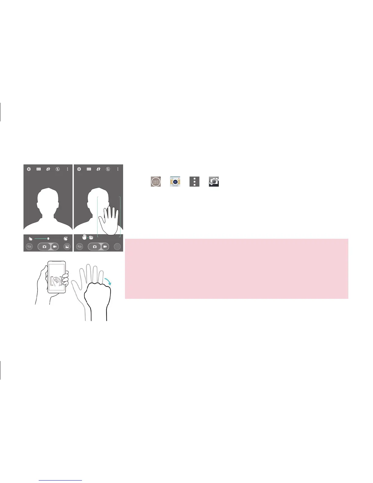 • Hold your hand upright to make the front camera recognize it. It