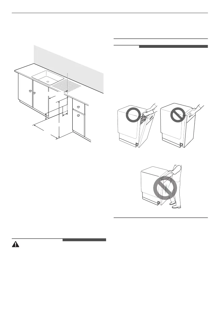• Slide the dishwasher into the cabinet, opening