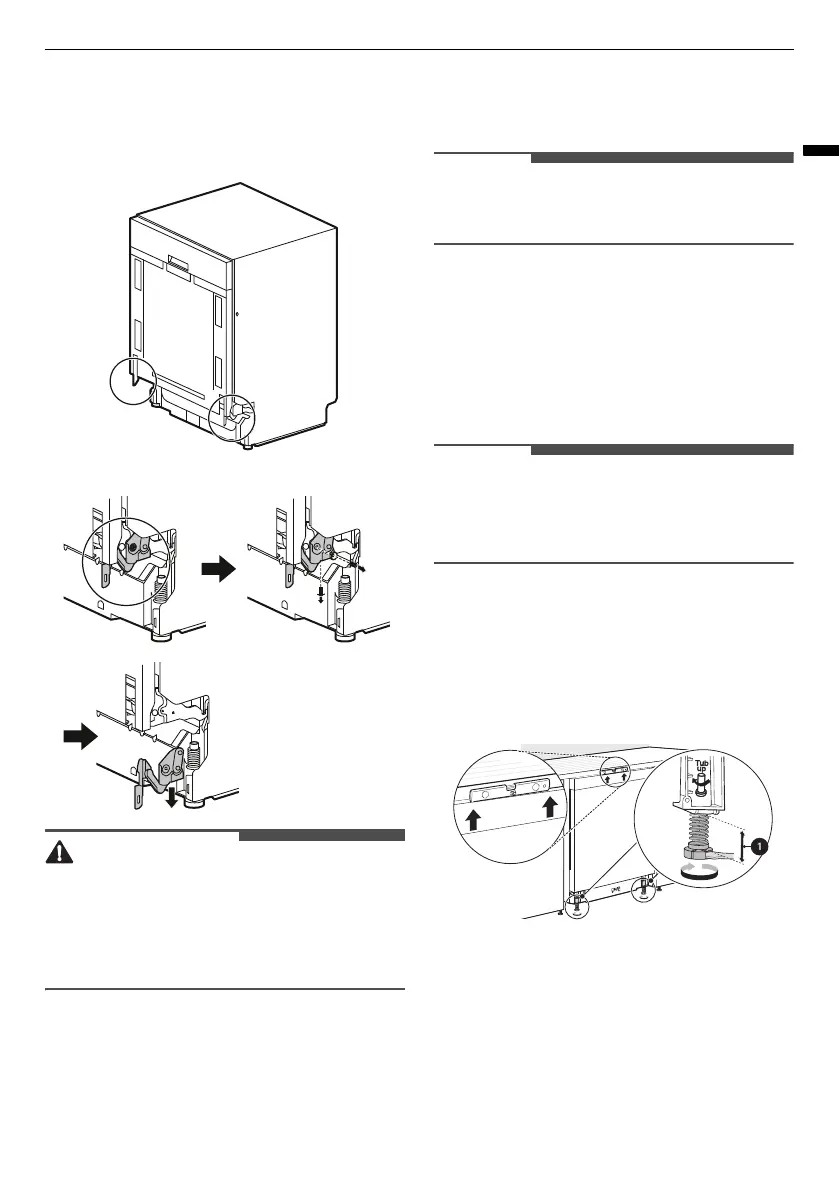 • Turn the front levelling feet clockwise to raise the