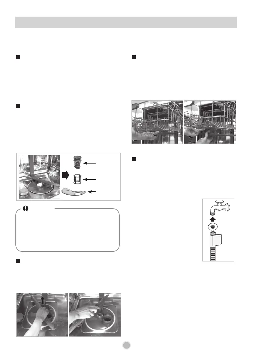 To prevent trouble and poor operating, it is important to check filters and spray arms