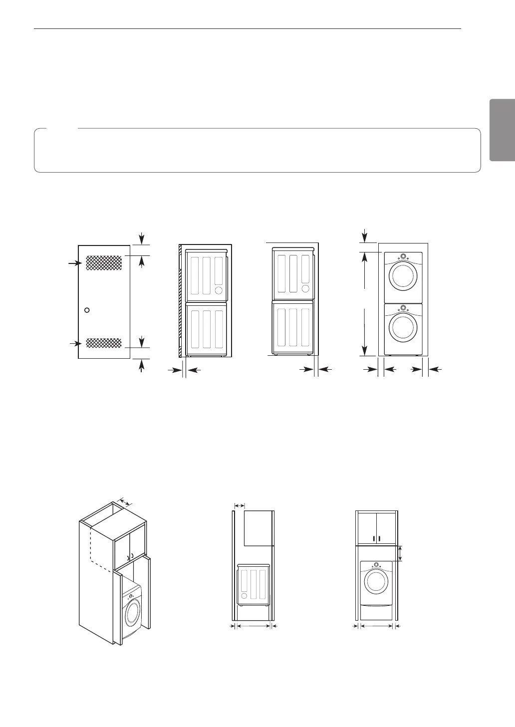 Espacio necesario para la instalación de lavadora y secadora apiladas en áreas