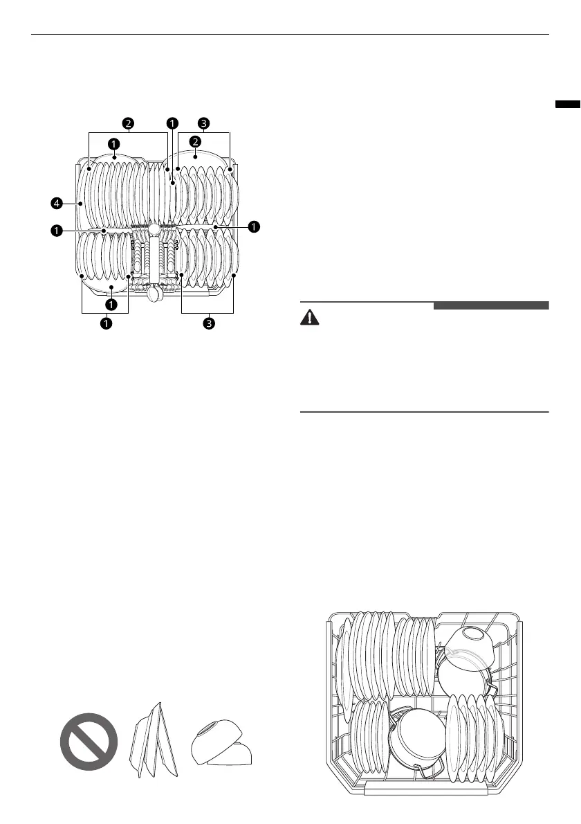 The lower rack is suitable for dinner plates, soup