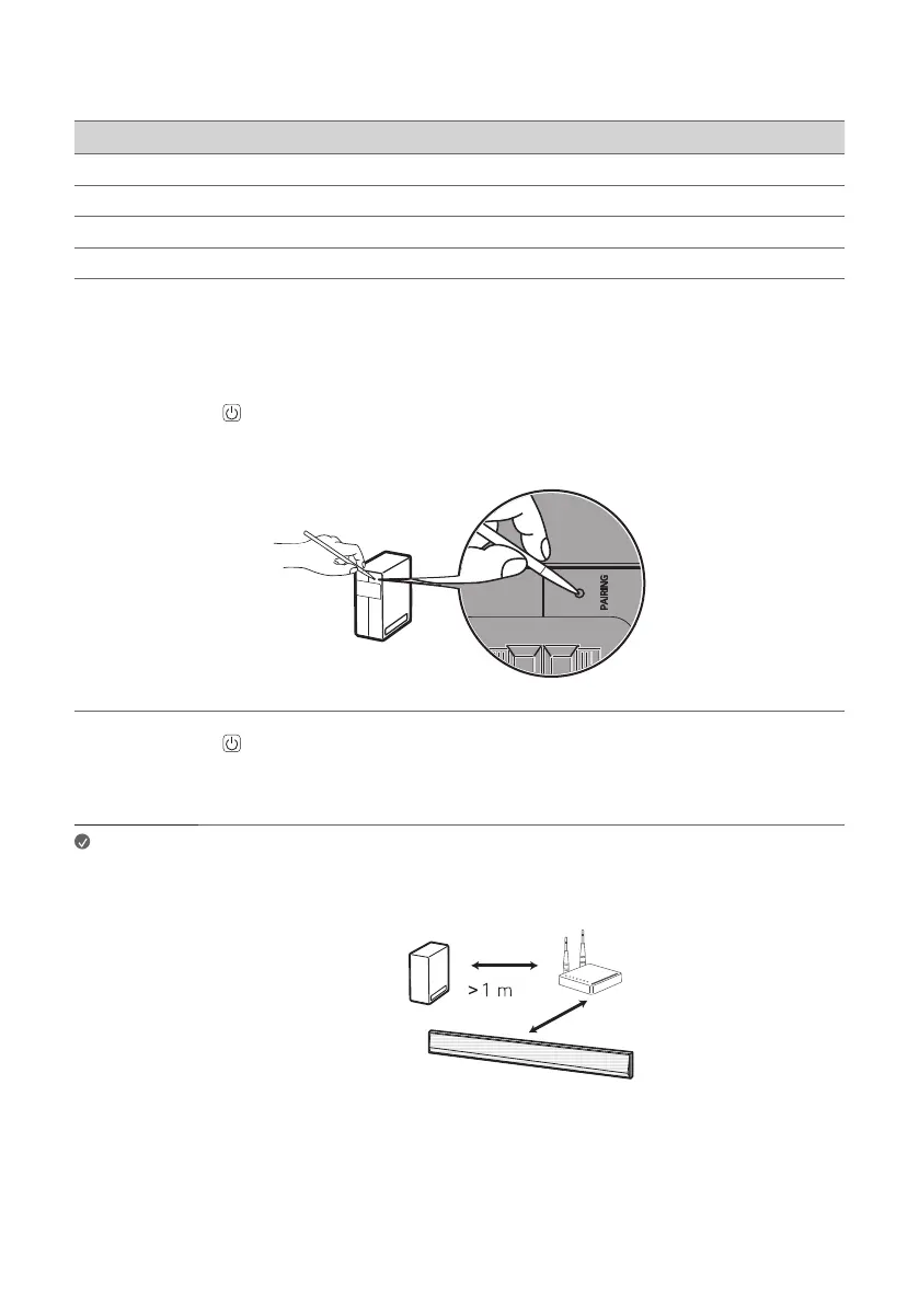 • To prevent wireless interference, maintain a distance of at least 1 m between the sound bar