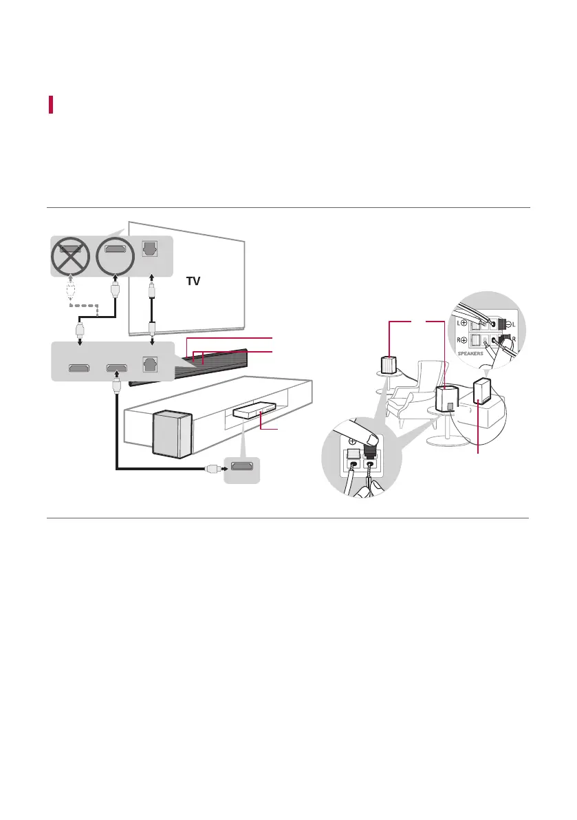 a Connect the sound bar to your TV via an optical cable or an HDMI