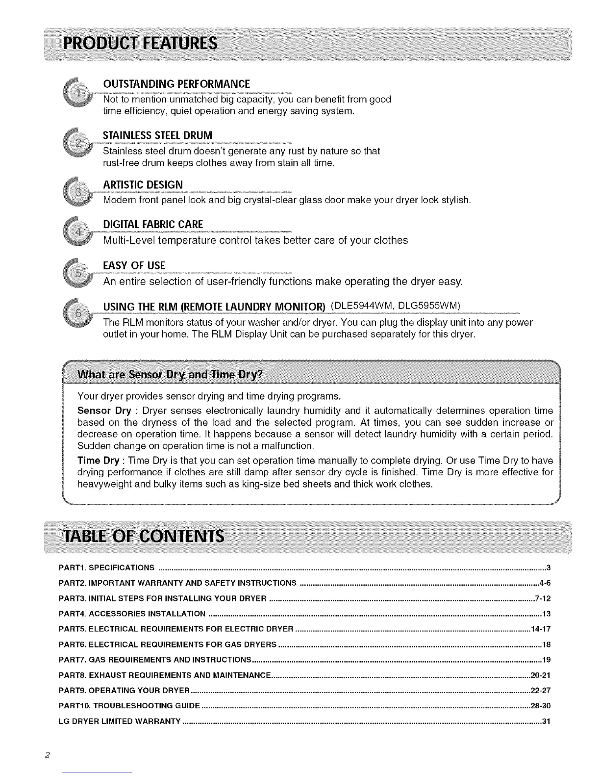LG DRYER LIMITED WARRANTY ..................................................................................................................................................................... 31