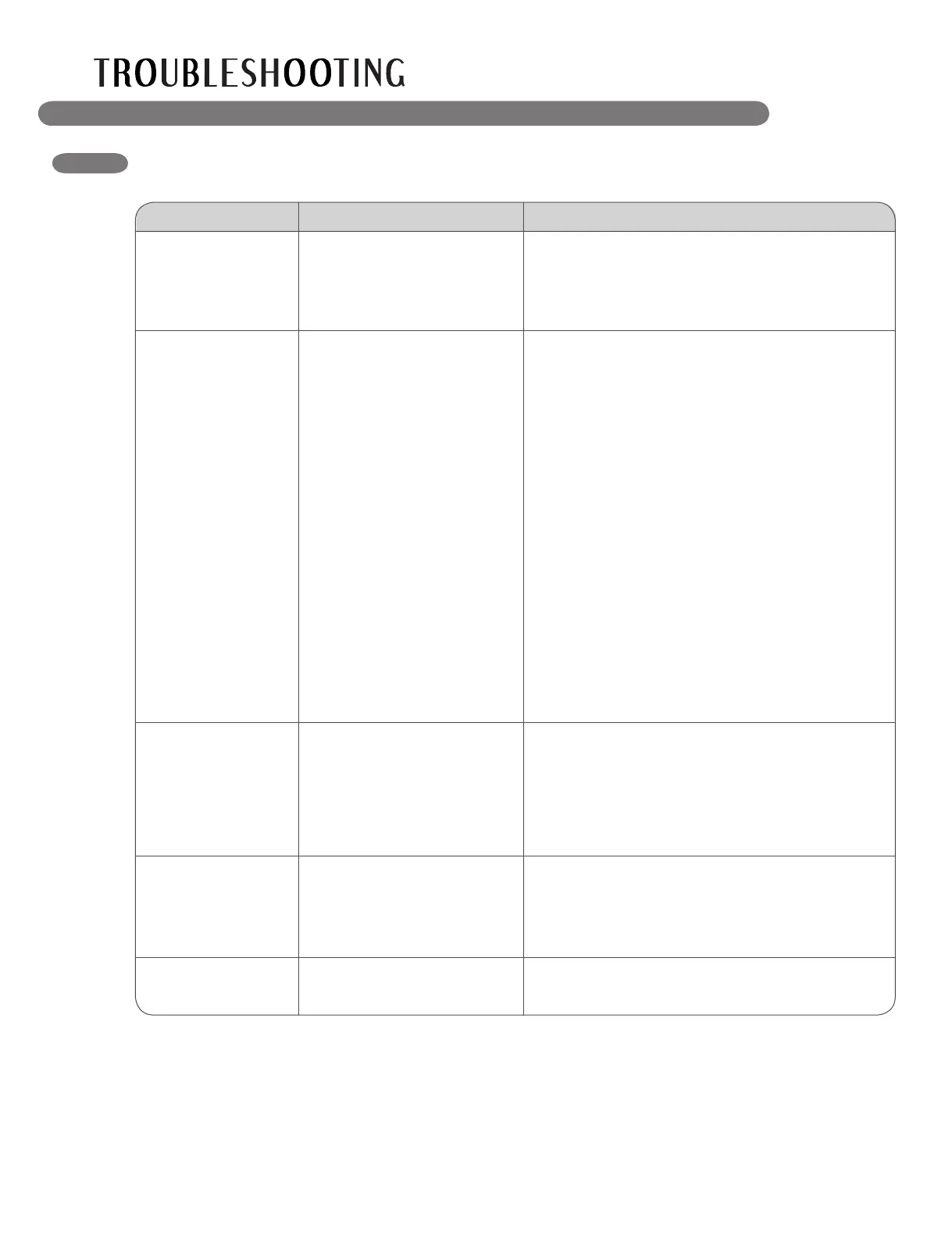 Problem Possible Causes Solutions