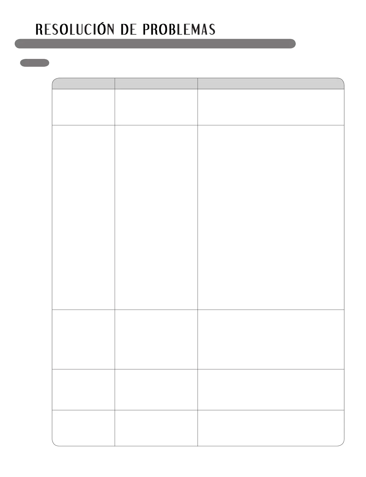 Problema Causas posibles Soluciones