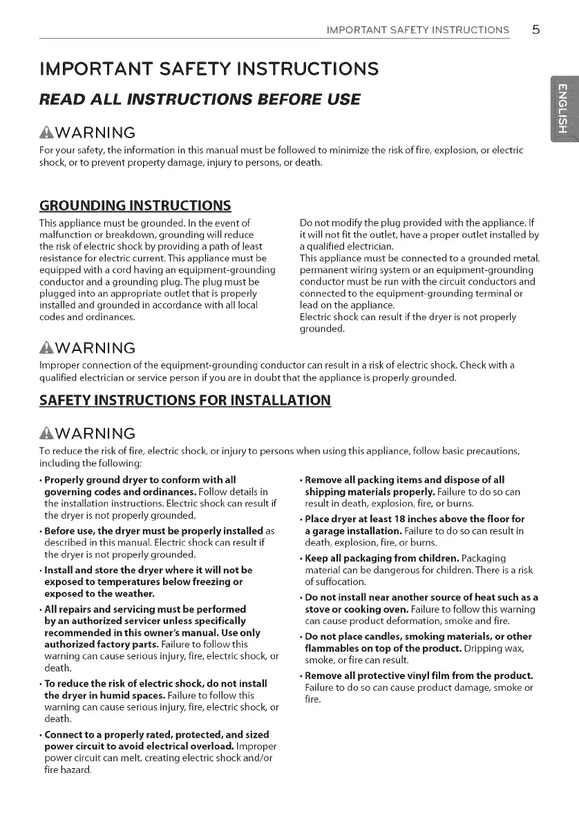 IMPORTANT SAFETY INSTRUCTIONS 5