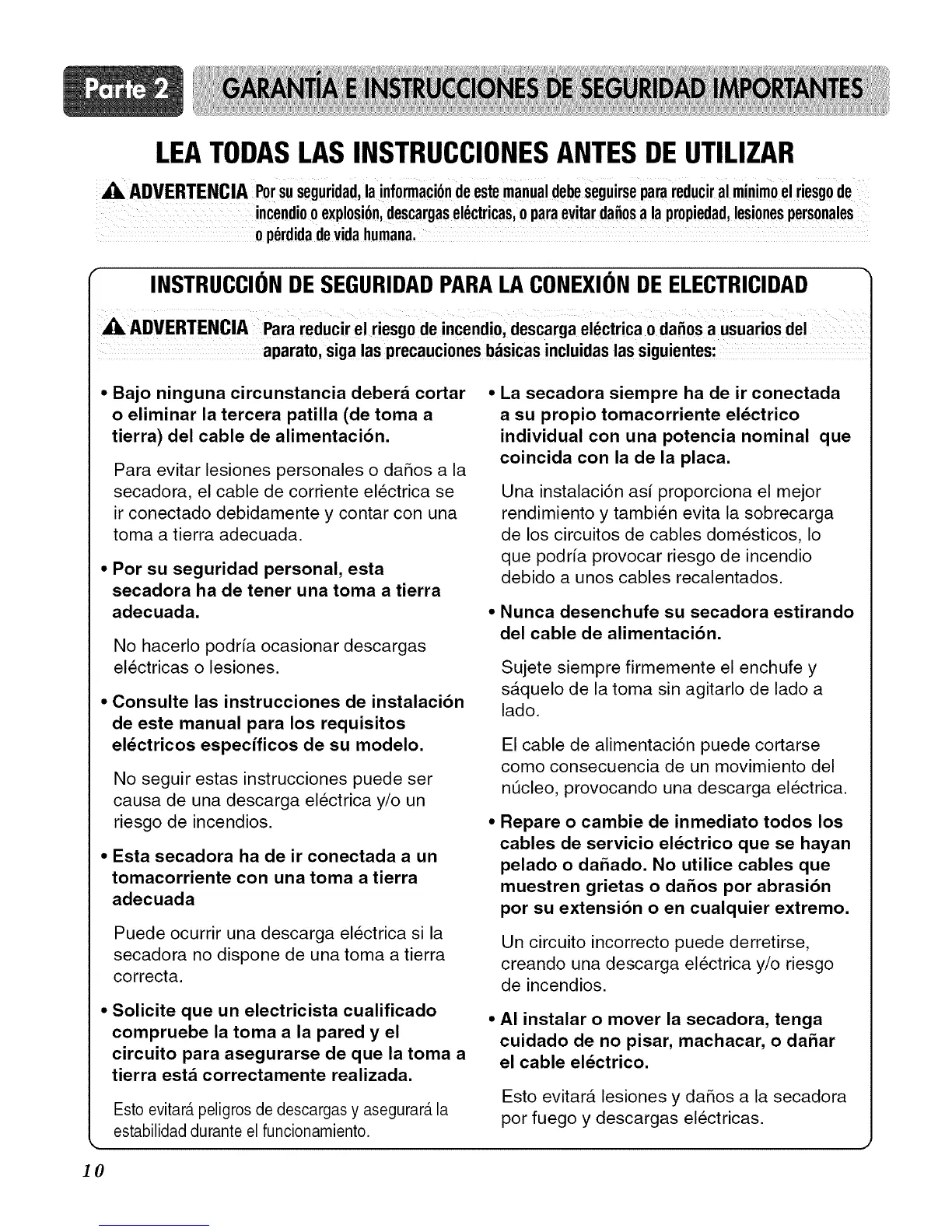 Esto evitar& lesiones y daSos a la secadora