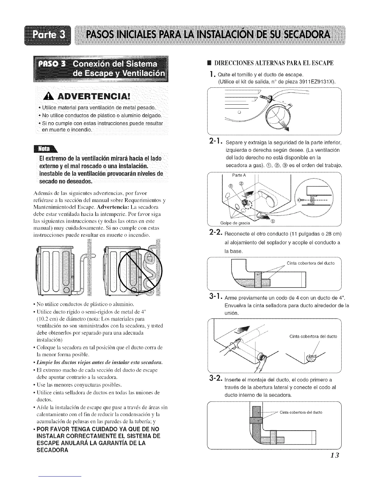 • Limpie los duetos viejos ames de instalar esta secadora.