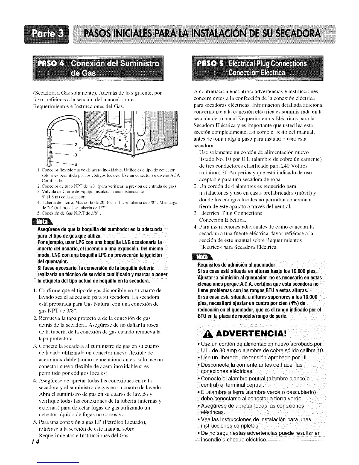 (Secadora a Gas solamente). Ademgs de 1o siguiente, pot