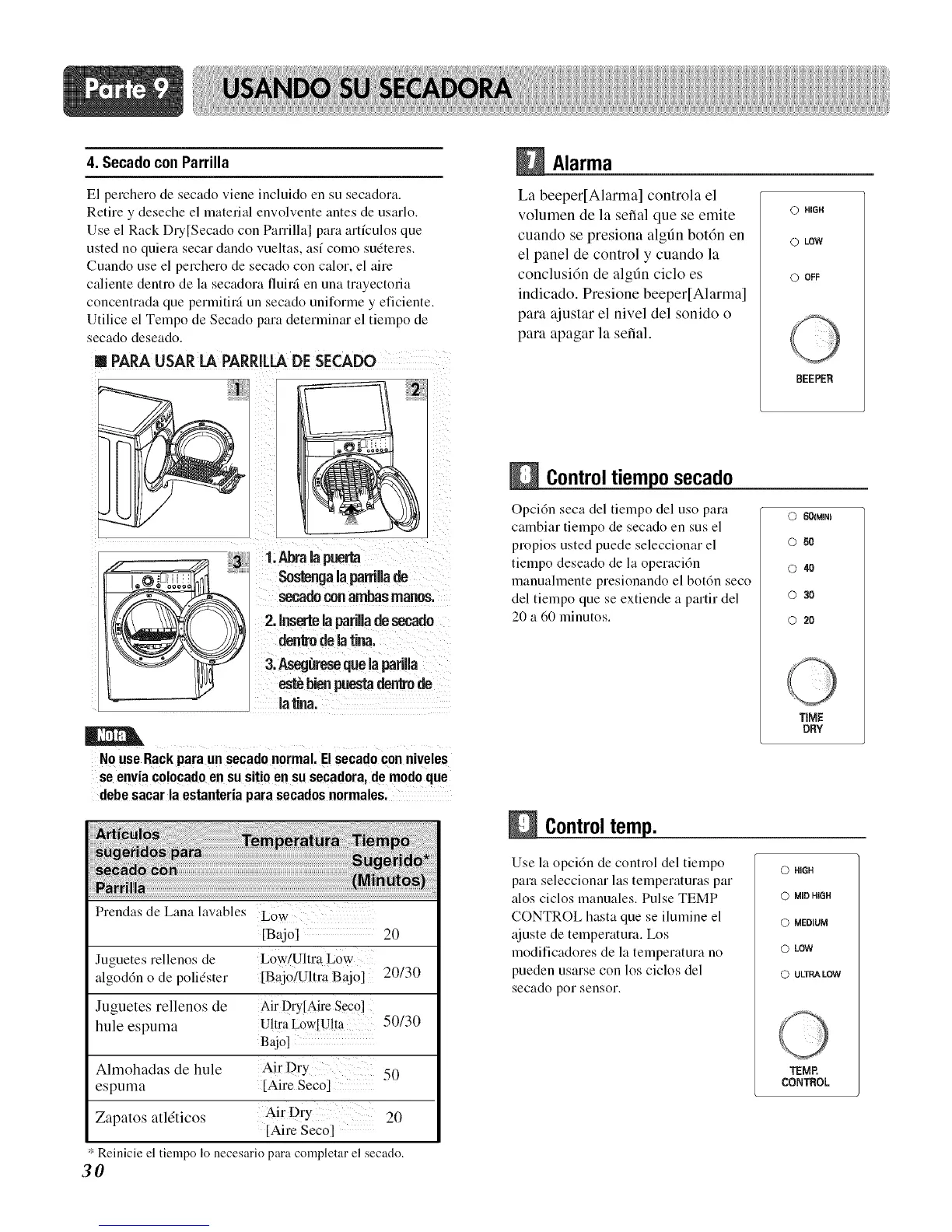 * Reinicie el tiempo 1o necesario para completar el secado.