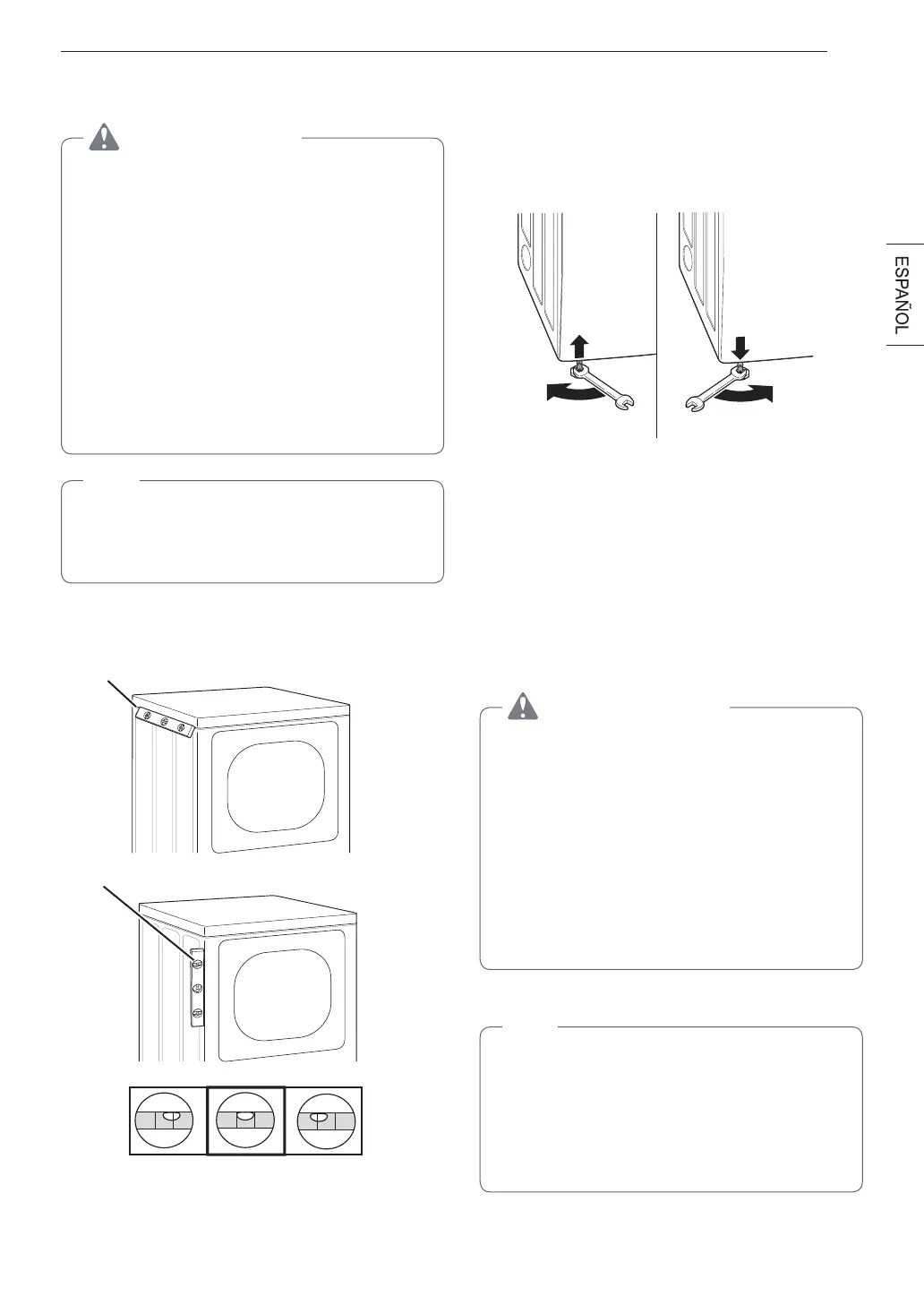 atrás. Asegúrese de que las cuatro patas niveladoras se