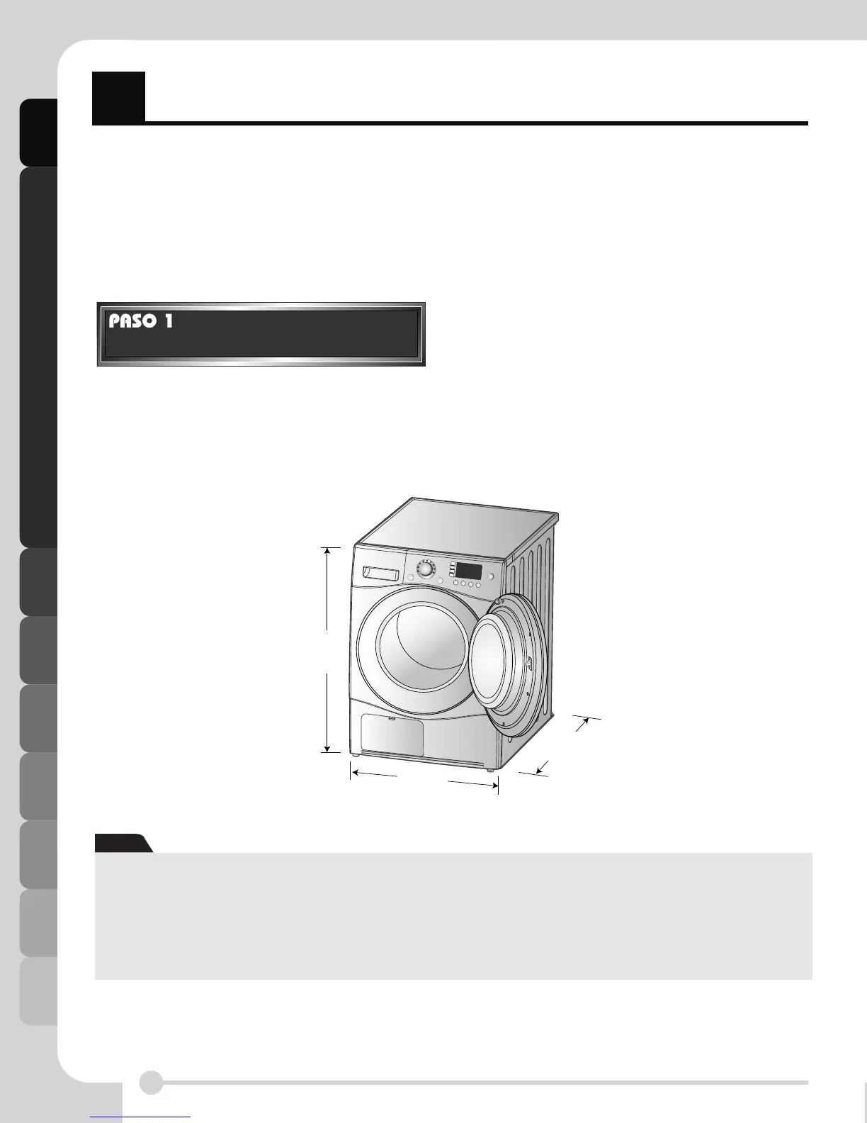 suelo si la instala en un garaje. Una vez la secadora ha sido instalada en el lugar deseado, asegúrese de que