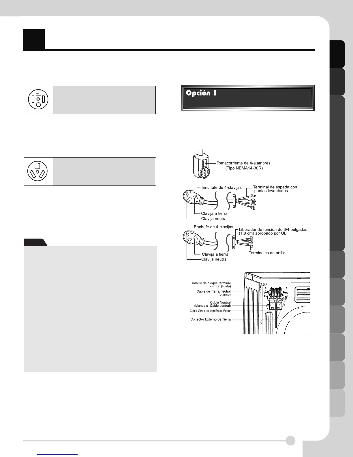 tiene un tomacorriente de 4-alambres (Tipo NEMA