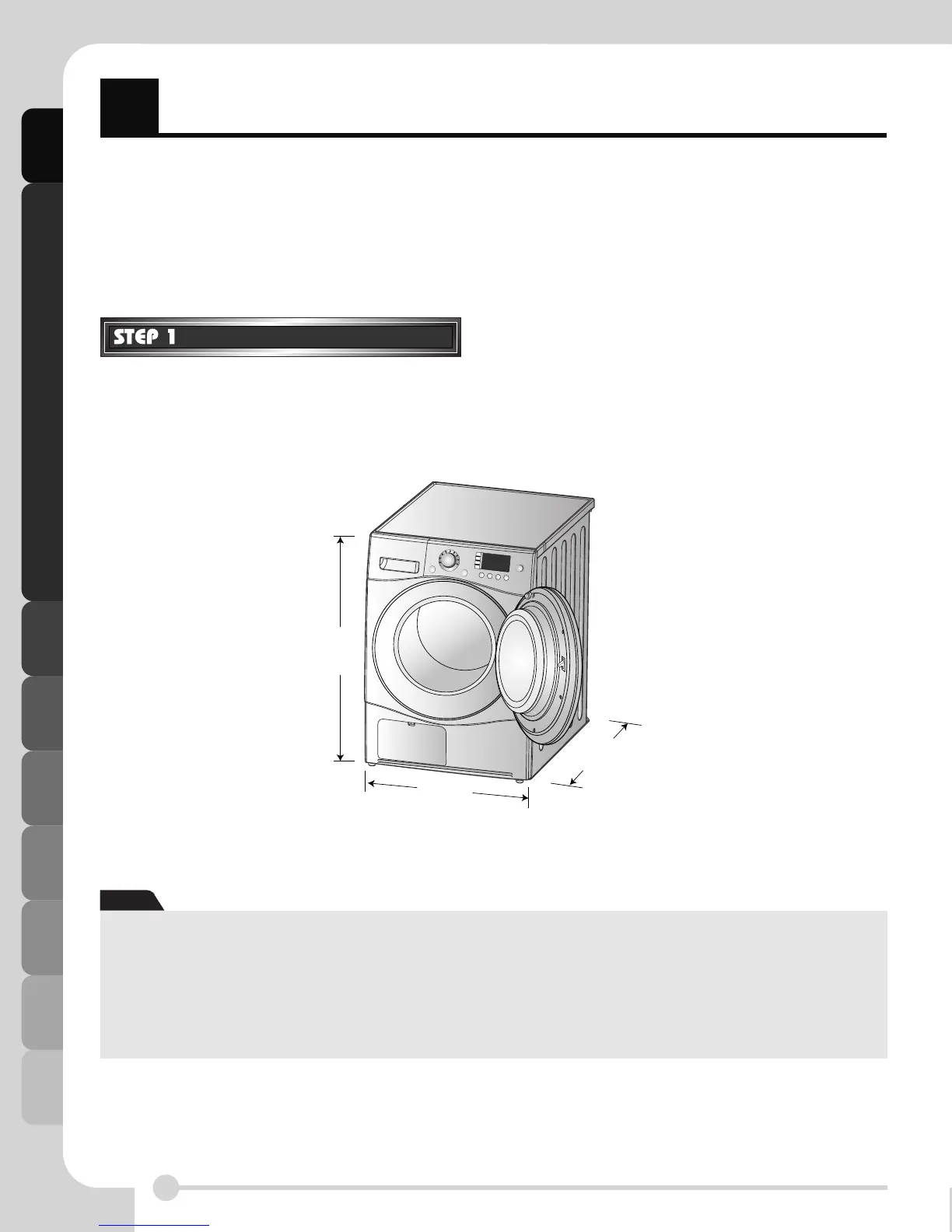 garage installation. After placing the dryer in the desired location, make sure that it has the required clearances