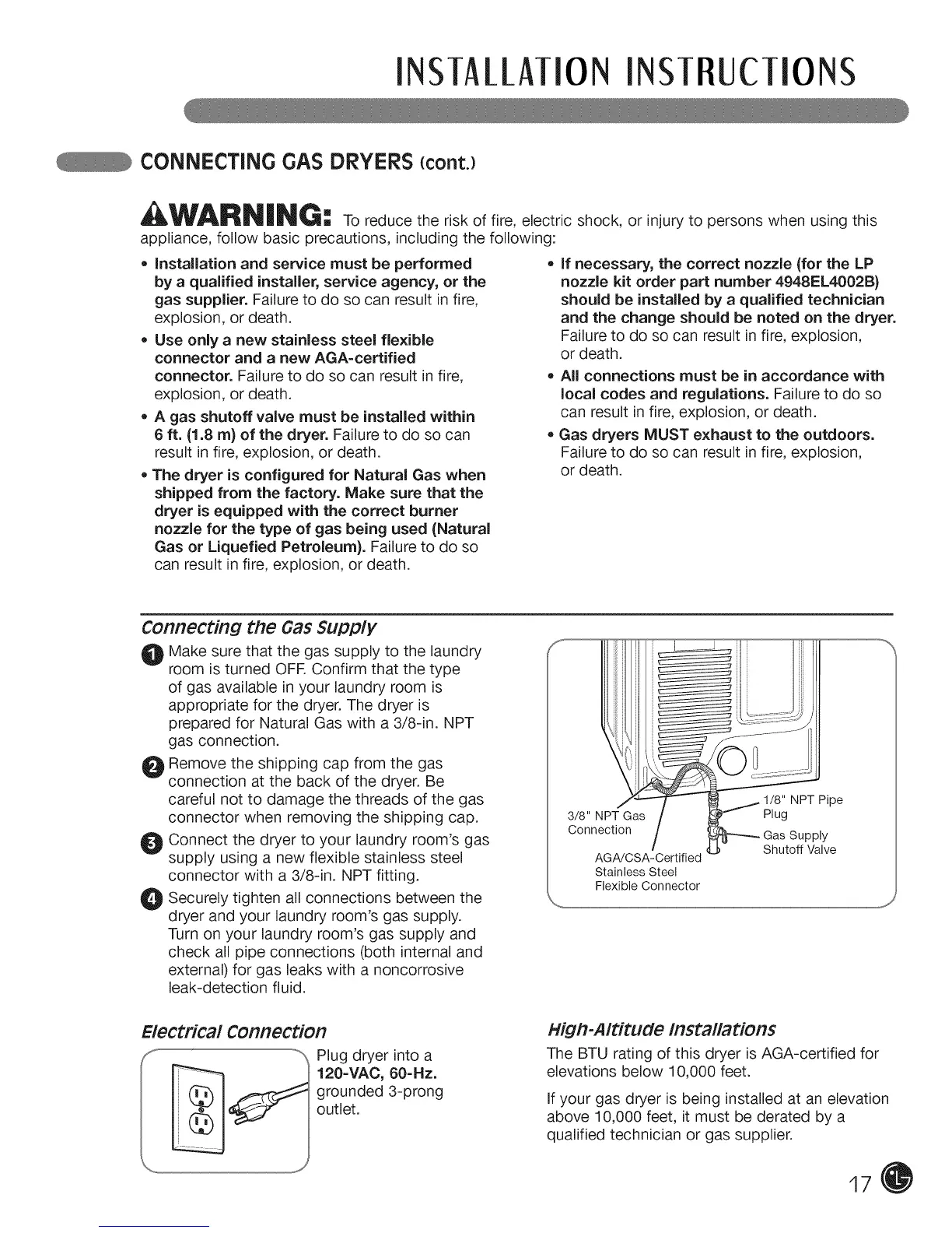 CONNECTING GAS DRYERS (cont.)