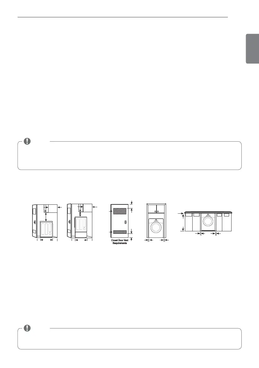 The following spacing dimensions are recommended for this dryer. Although this dryer has been tested for