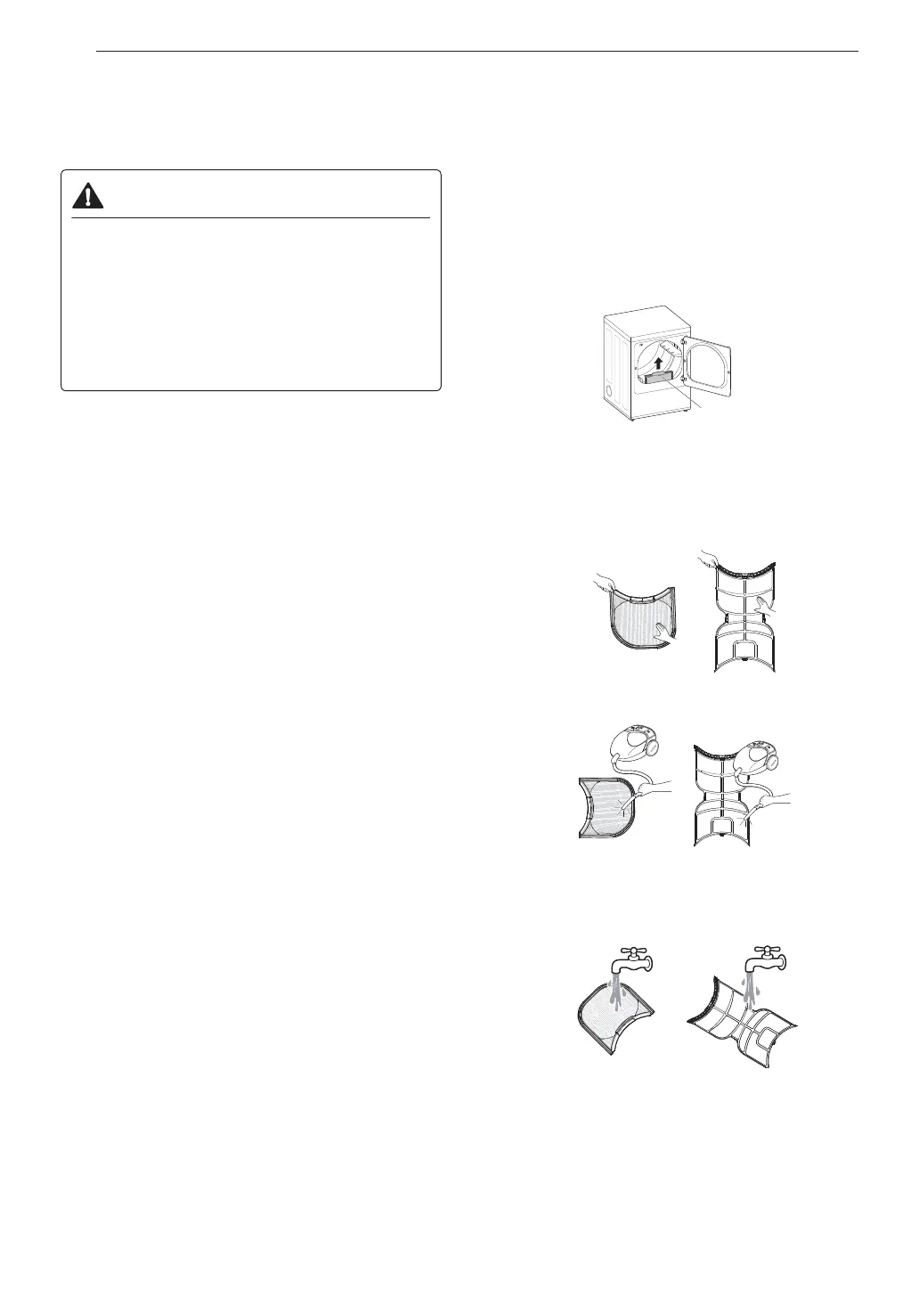 • NEVER operate the dryer without the lint filter in