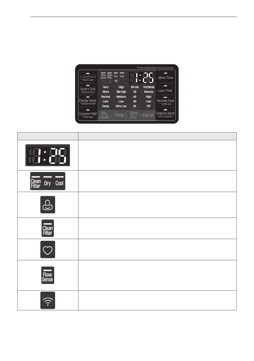 correspondientes a su secadora. Cuando se gira el secador, la luz en la exhibición iluminará.