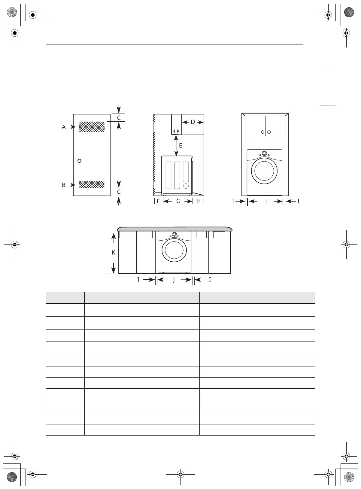 • Additional clearances should be considered on all sides of the dryer to reduce noise transfer.