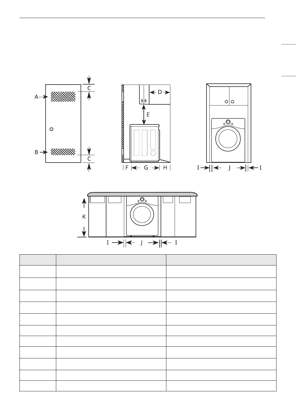 • Additional clearances should be considered on all sides of the dryer to reduce noise transfer.