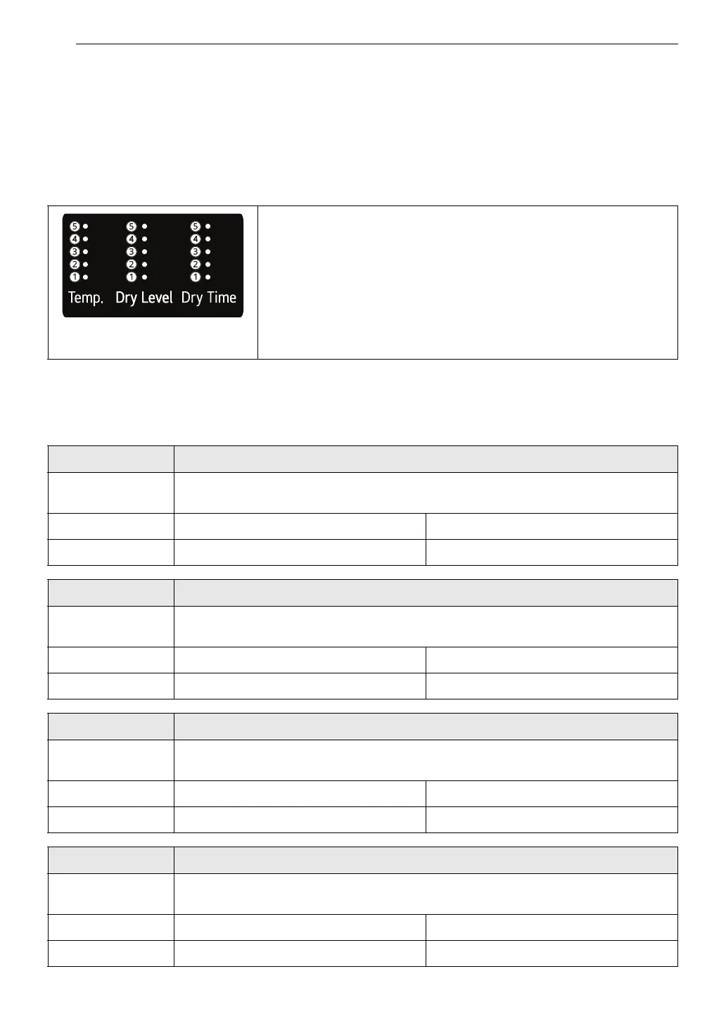 The appliance automatically sets the dryness level and temperature at the recommended setting for each