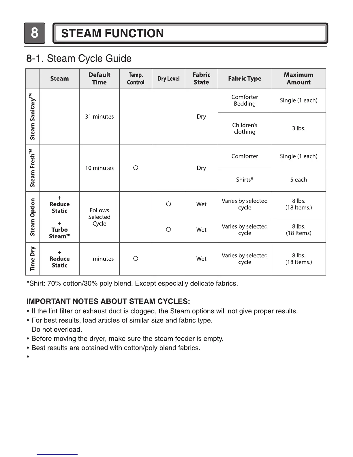 LG DLEX7700*E - Steam Function; Steam Cycle Guide; Notes about Steam Cycles