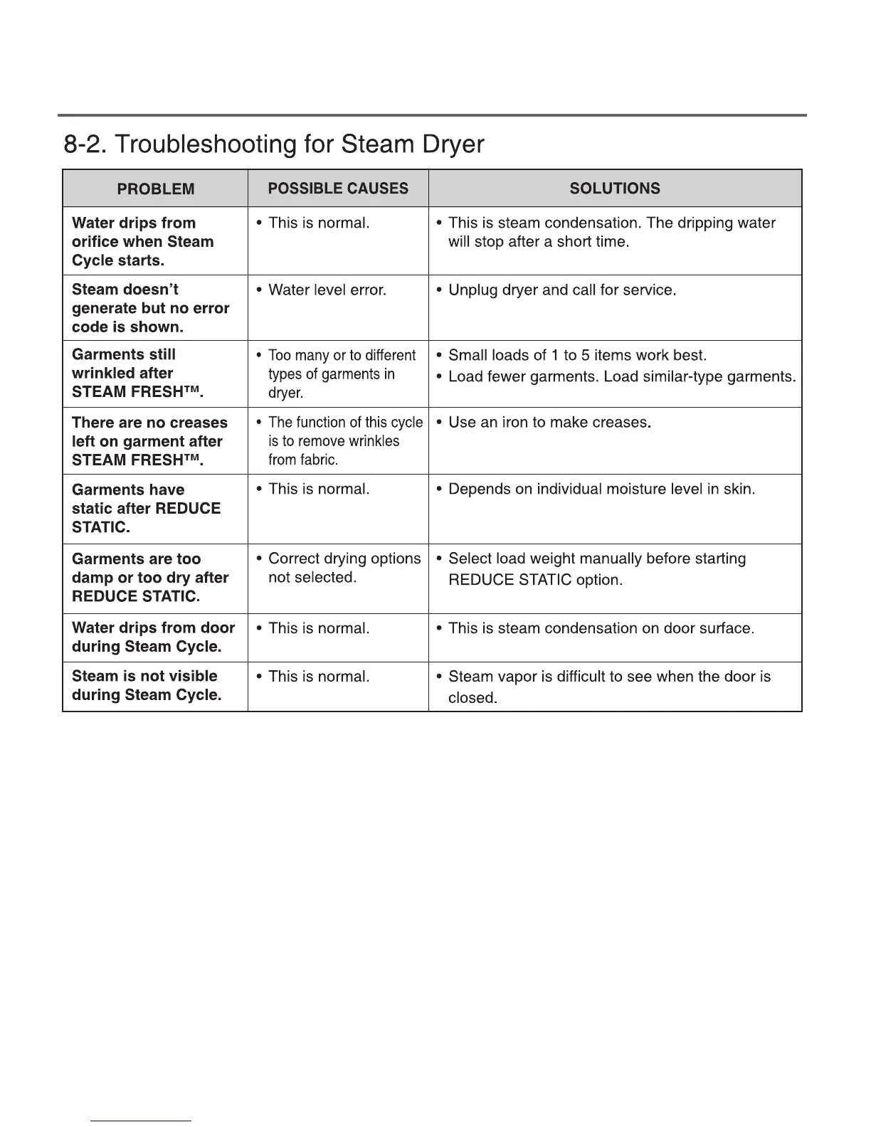 LG DLEX7700*E - Troubleshooting for Steam Dryer