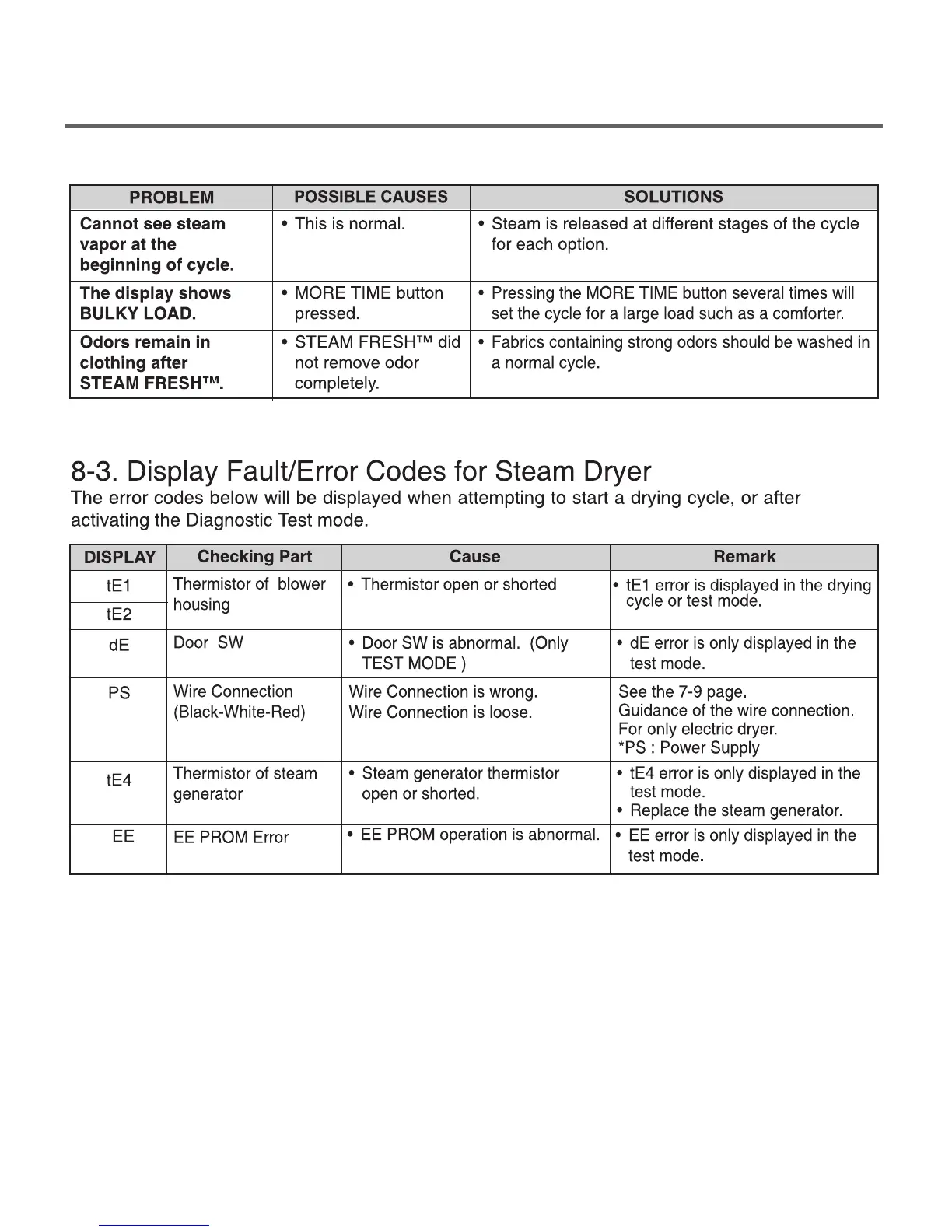 LG DLEX7700*E - Display Fault;Error Codes for Steam Dryer