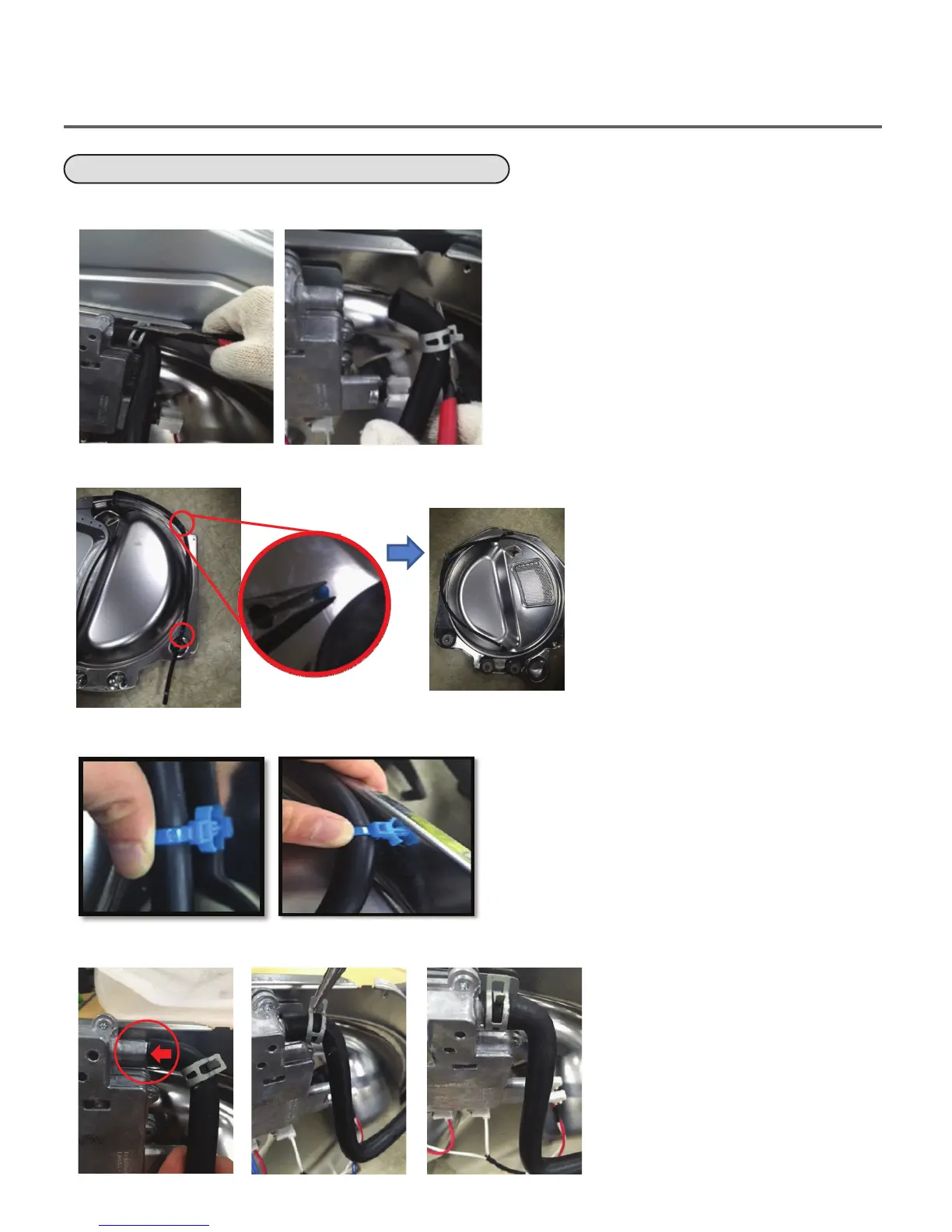 7. Replace the hose, and assemble the cable tie holder in Tub, Rear.