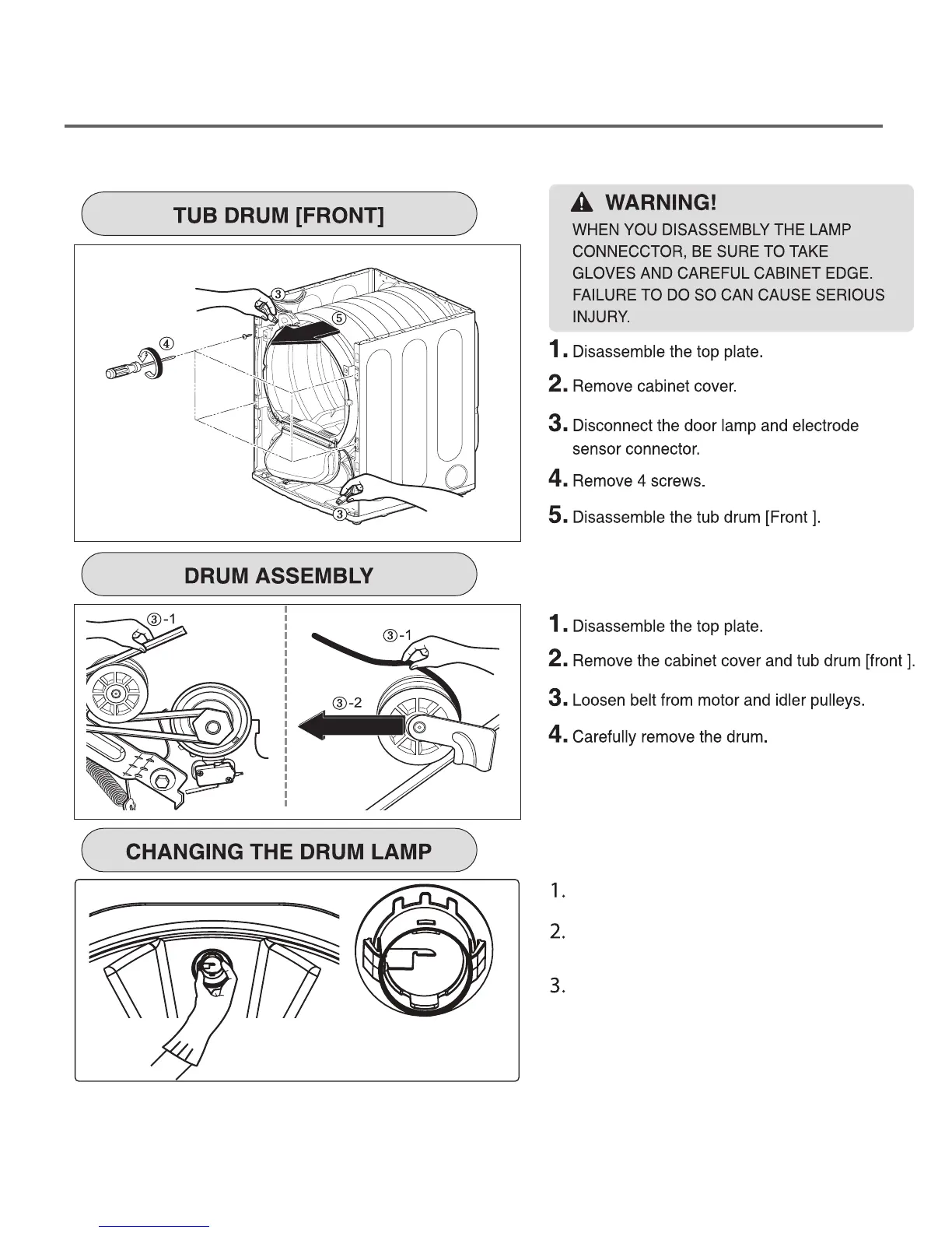 LG DLEX7700*E - Tub Drum; Drum Assembly; Changing the Drum Lamp