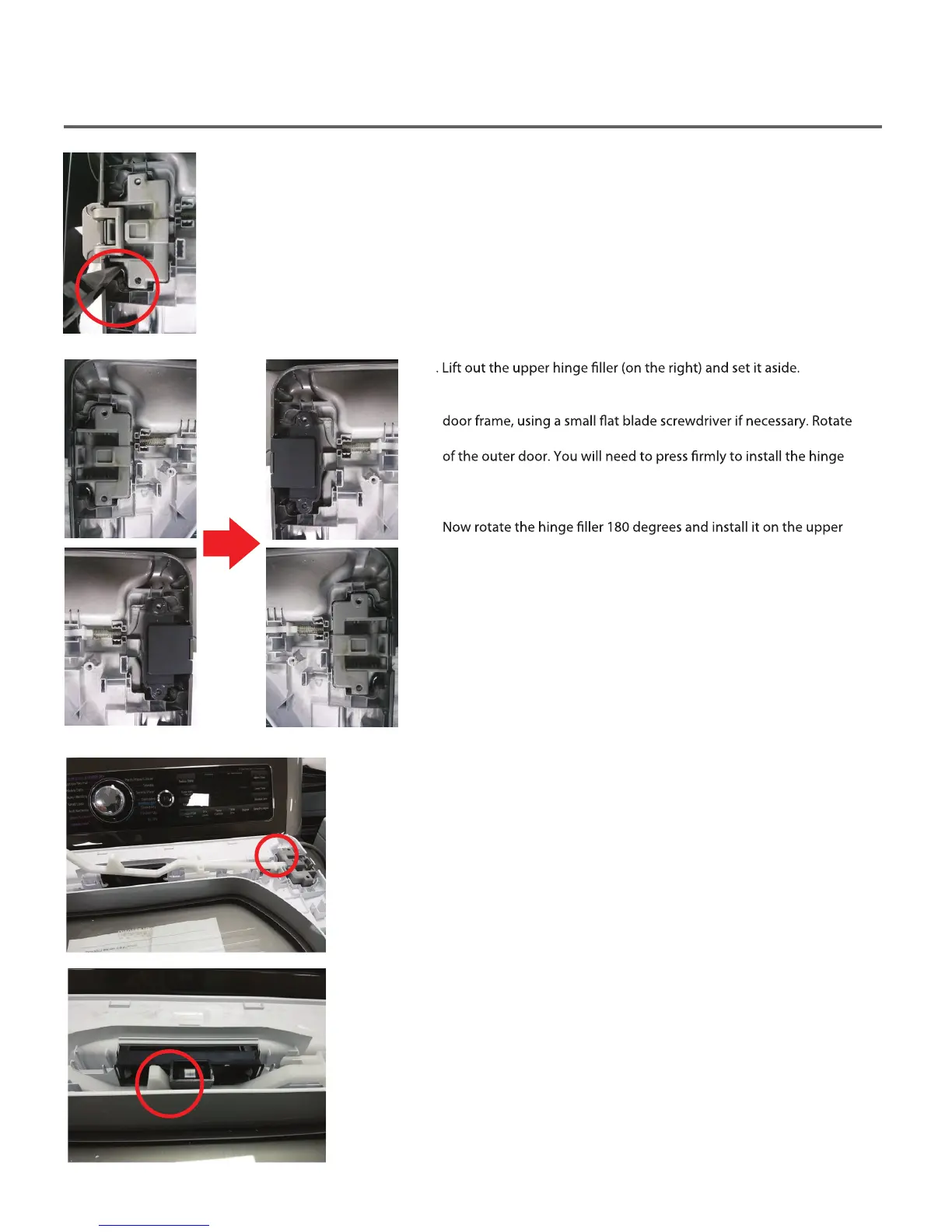 Carefully lift the upper hinge assembly (on the left) out of the outer